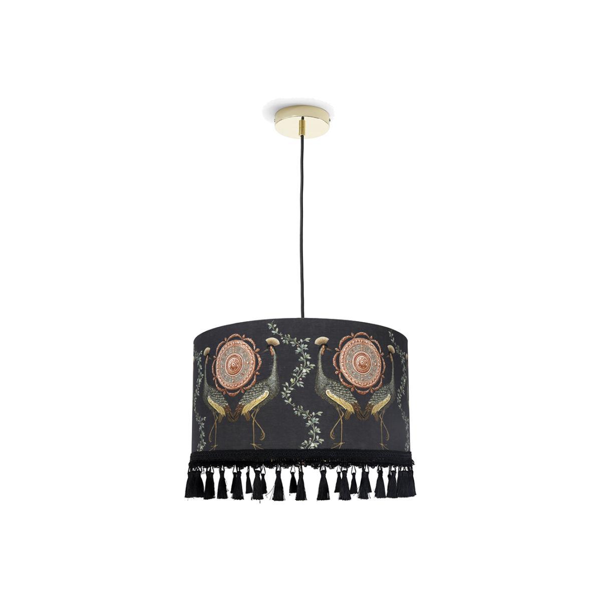 Make a style statement in your living space with the Garden Birds drum ceiling light from MINDTHEGAP. With an eye-catching large scale illustrated birds design, featuring royal rose ornaments, it will illuminate your room in style. Finished with metallic gold lining and black-tasselled fringes, this ceiling light is the touch of glamour your interior deserves.