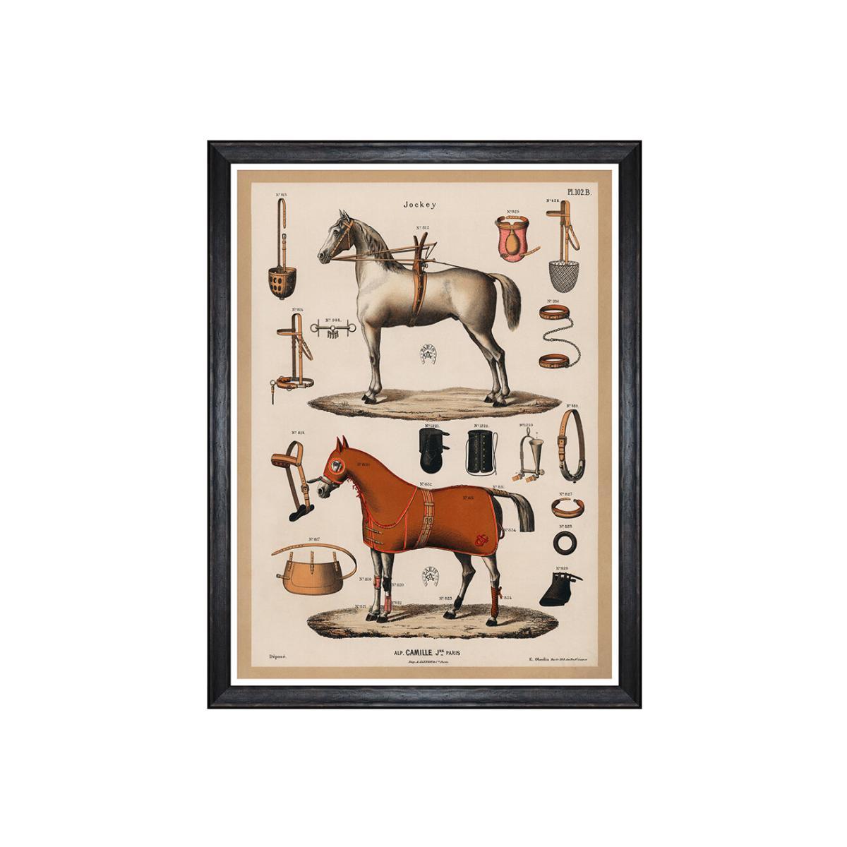 I love this riding equipment print for its vintage charm and detailed illustrations, making it a versatile piece that can add character to both traditional and eclectic interiors. It works particularly well in spaces like studies, country-style kitchens, or a relaxed living room, where it can complement rustic or heritage decor. Practical styling tips include pairing it with natural textures like wood and linen, or using it as a focal point above a sideboard or sofa. Its 60x80cm size makes it an eye-catching detail without overwhelming the space, and adding a simple black frame ensures it stays sleek and modern against more traditional surroundings.