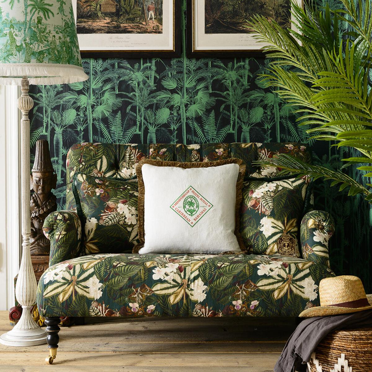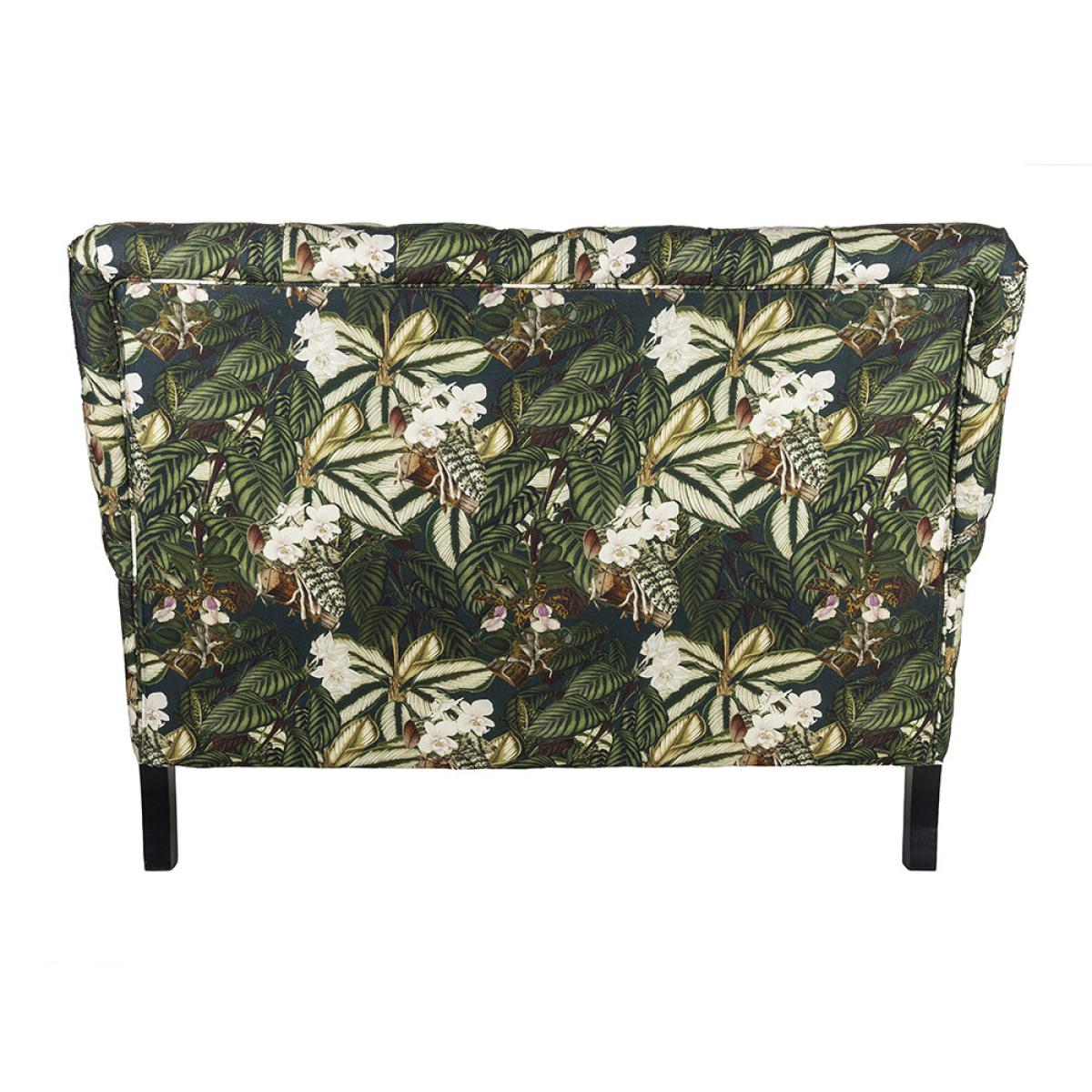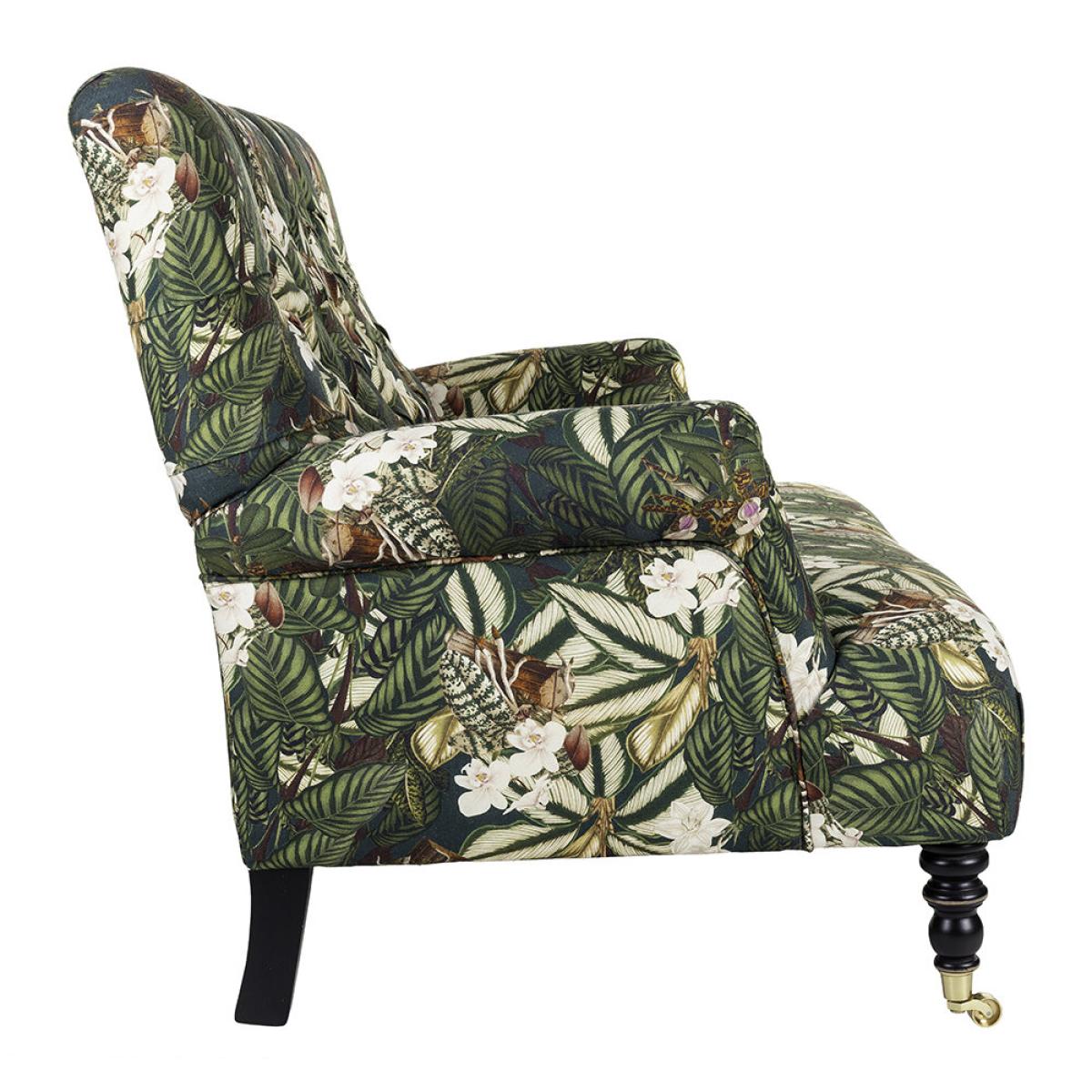I love this sofa because of its bold, tropical floral fabric that adds instant character to a room. It's a statement piece that works particularly well in eclectic, boho, or maximalist interiors, giving them a lush, exotic vibe. When styling around it, consider pairing with neutral or earthy tones to let the fabric really stand out, and add some textured cushions or throws in complementary colours. Its classic shape with a touch of vintage charm makes it versatile enough to fit both traditional and modern schemes, but it truly excels when used as a focal point in a spirited, relaxed living space.