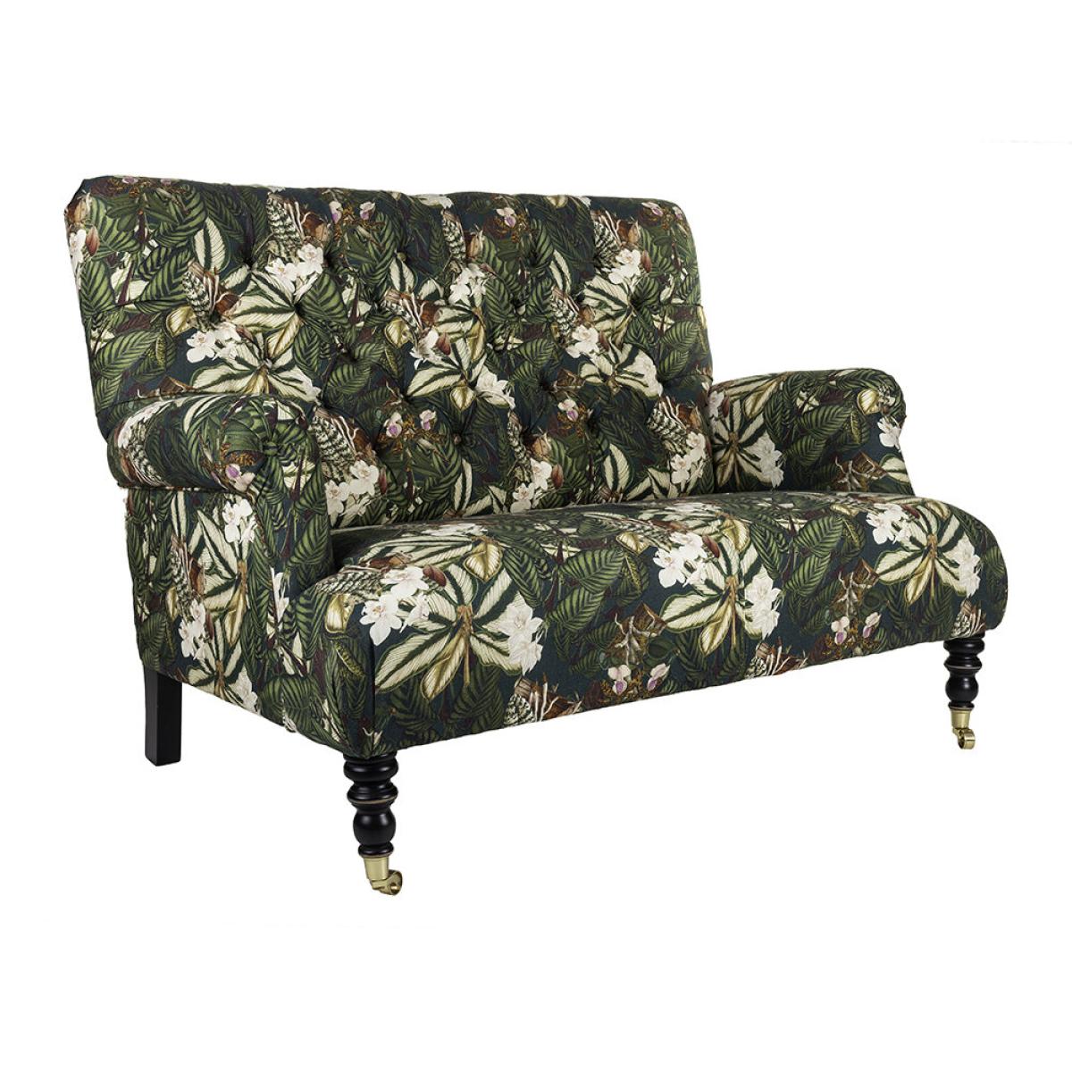 Looking for the best seat in the house? This Truman sofa from MINDTHEGAP features a beautiful print with a high-buttoned back, rollover arms and deep comfortable seating. Please note, due to the printing process, colours will fade when exposed to direct sunlight. For curtains, blinds, and draperies, we strongly recommend using a blackout lining.