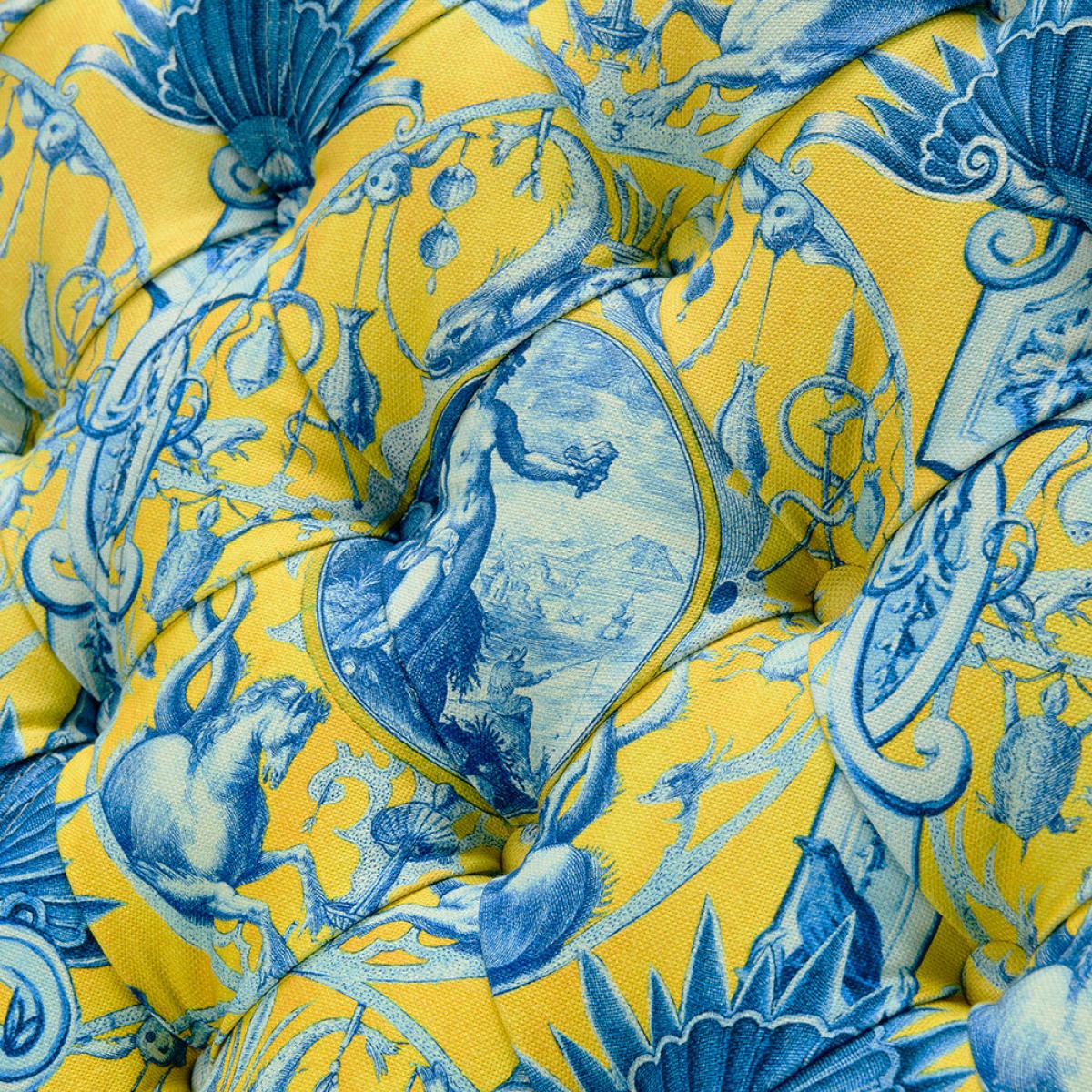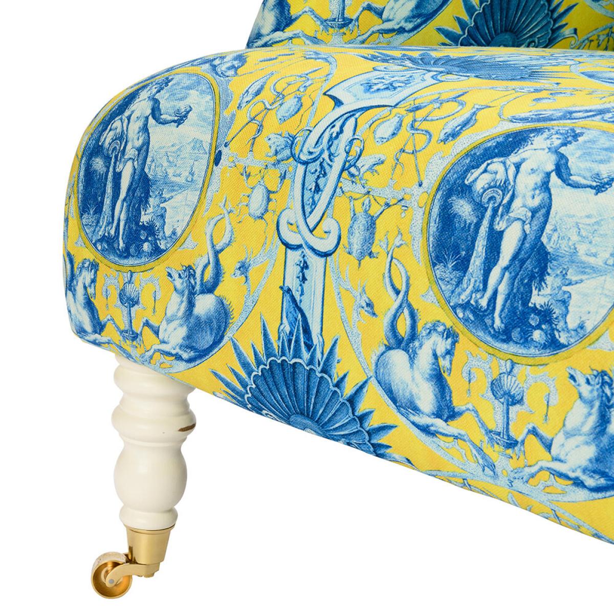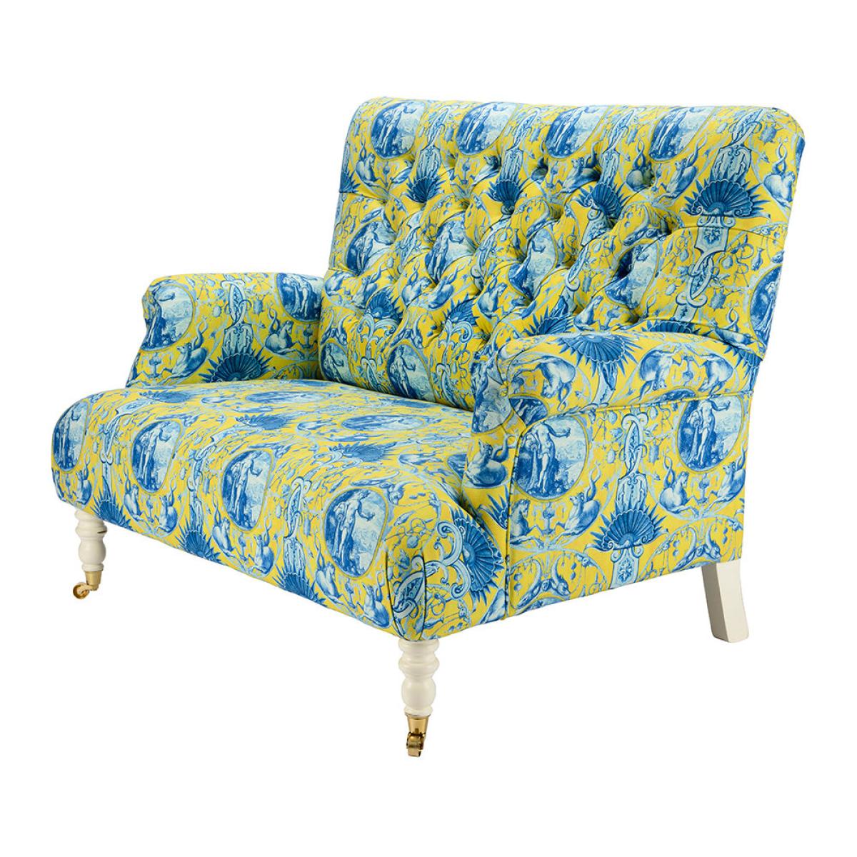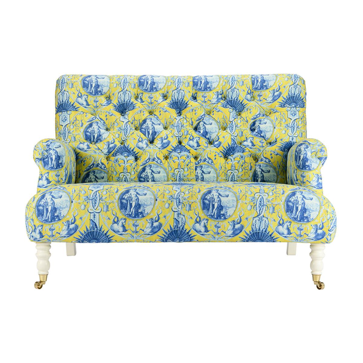 Looking for the best seat in the house? This Truman sofa from MINDTHEGAP features a beautiful print with a high-buttoned back, rollover arms and deep comfortable seating. Please note, due to the printing process, colours will fade when exposed to direct sunlight. For curtains, blinds, and draperies, we strongly recommend using a blackout lining.