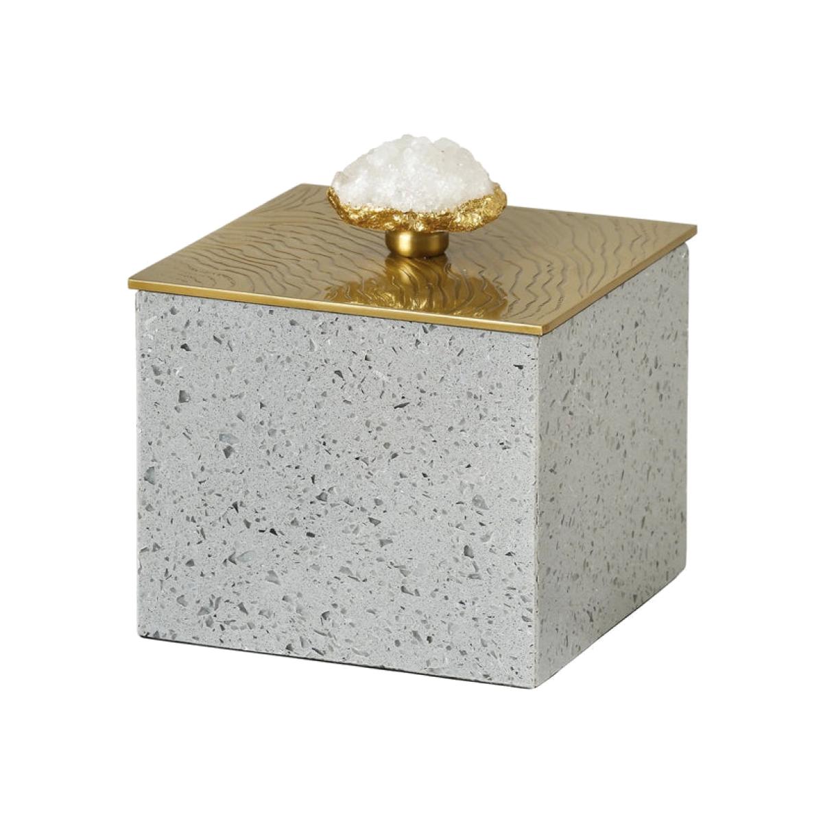 I love this small canister because it combines textures beautifully - a striking gold lid topped with a mineral-like, crystalline handle adds a touch of luxury. It’s versatile and works well in modern, boho, or eclectic interiors, especially when paired with natural materials or mixed metals. Practical styling tips include using it to store small household essentials like jewellery, keys, or even tea bags in a kitchen or office setting. Its compact size makes it ideal for tabletops, shelves, or bedside tables, adding both functionality and visual interest without overwhelming the space.