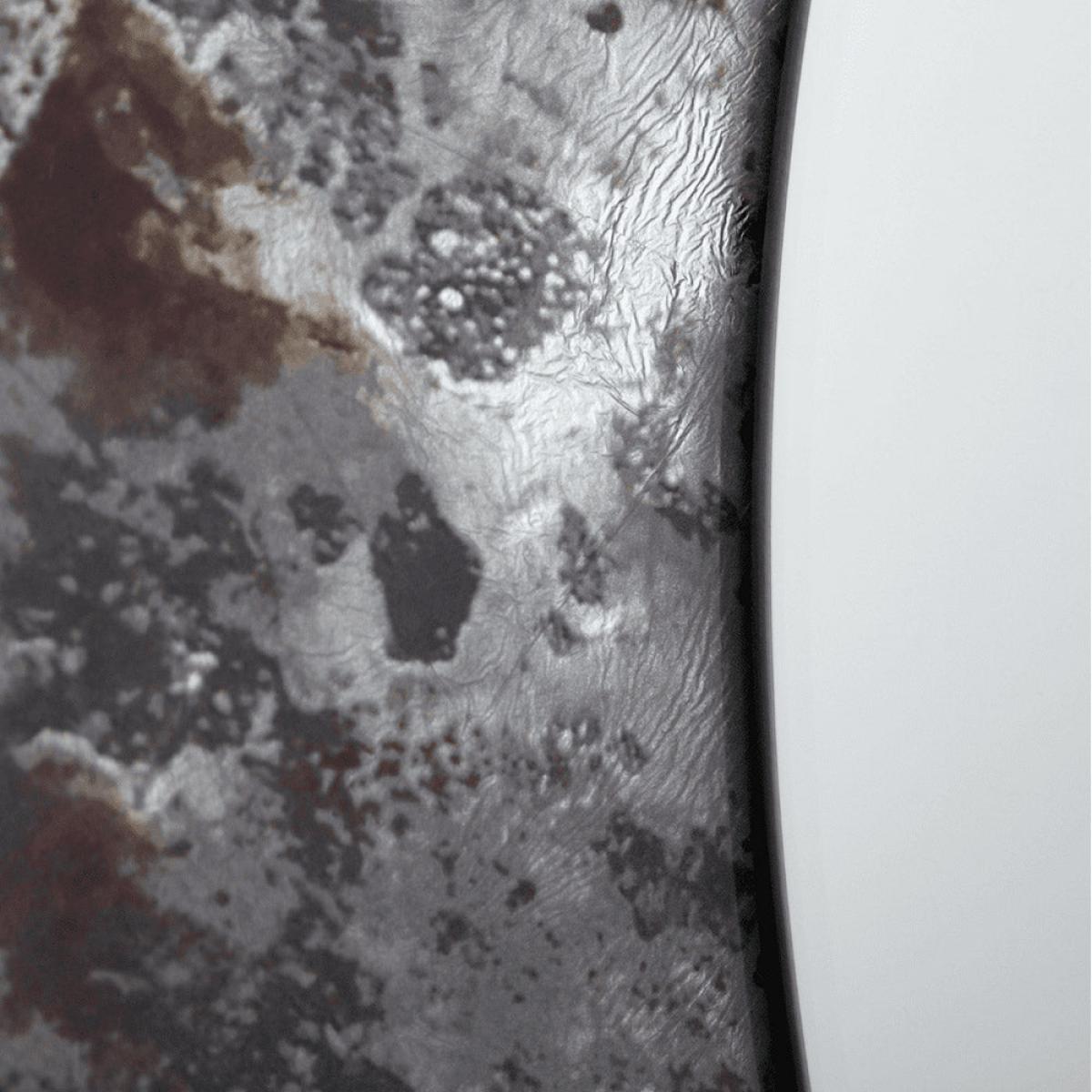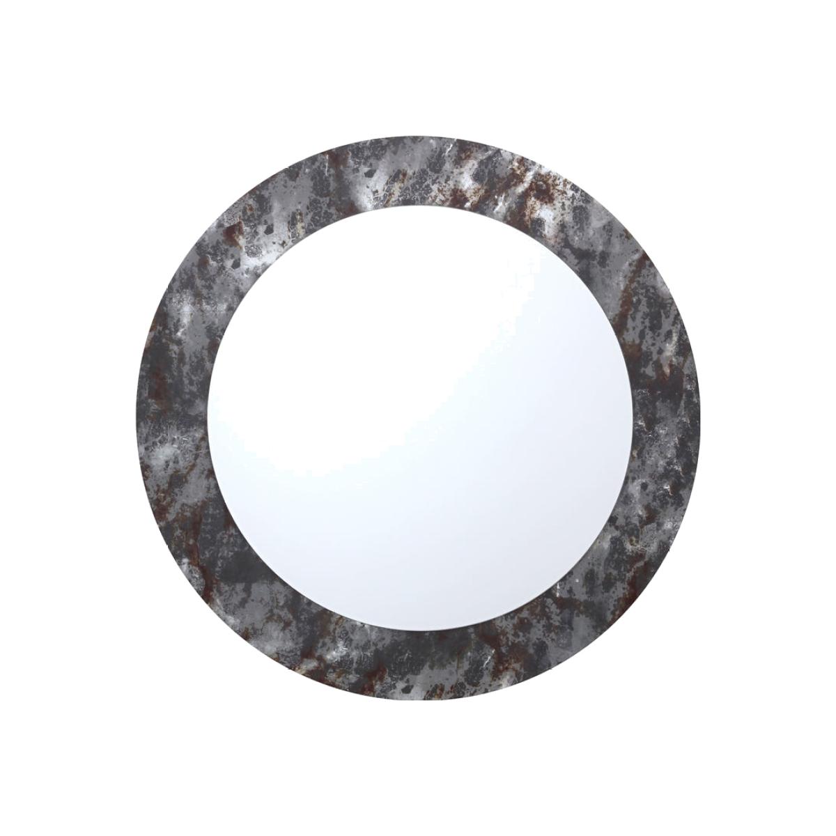 A beautiful Circular Mirror. Contemporary in design with silver finish and distressed/rust-like detailing. Ideal for any room in the home and would make a wonderful addition above a console, sideb. View More. A beautiful Circular Mirror. Contemporary in design with silver finish and distressed/rust-like detailing. Ideal for any room in the home and would make a wonderful addition above a console, sideboard, or mantle.
