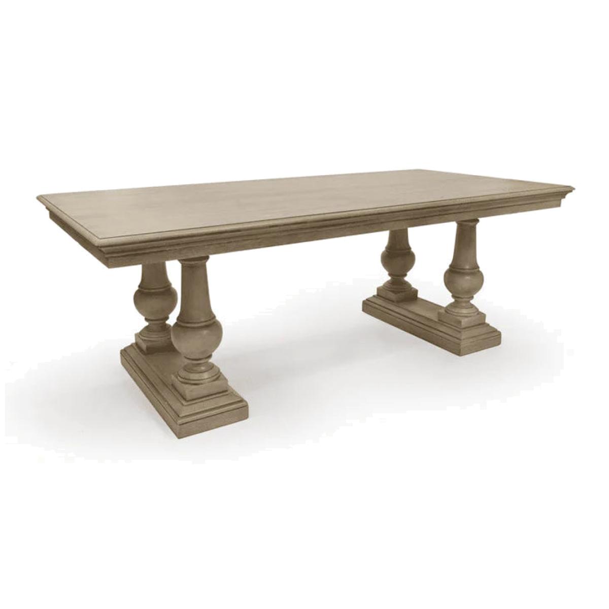 I love this dining table because of its substantial, timeless design and classic details. It works particularly well in traditional or rustic interiors, but can also be paired with contemporary pieces for a more eclectic look. Practical styling tips include layering with a mix of textured tableware and centrepieces to add visual interest, and considering its weight and presence when planning the room layout. Its robust structure makes it ideal for both everyday family use and more formal occasions, making it a versatile anchor for your dining space.