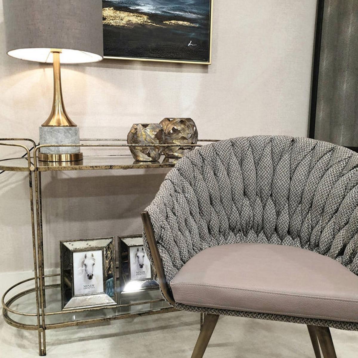 Taupe tweed inspired fabric interwoven with faux leather seat and antique bronze effect frame. The Blake Occasional Chair  is the ultimate in style and comfort! Dimensions: W:63 x D:54 x H:80 cm