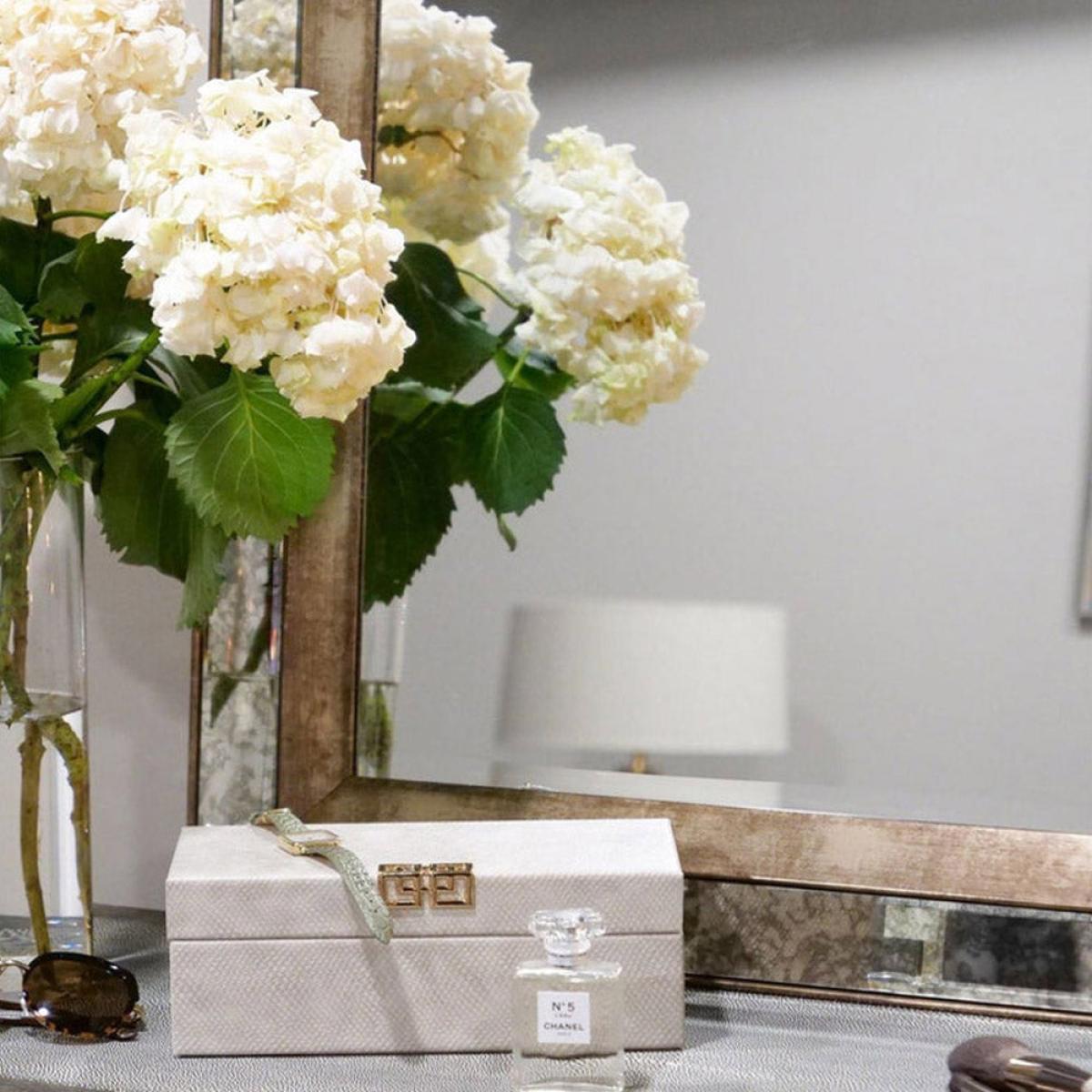 I love this mirror because of its versatile, contemporary aesthetic-it works equally well in both classic and modern interiors. The contrast of the sleek mirror glass with the textured border offers a subtle yet striking detail that can elevate a hallway, bedroom, or living space. If you’re styling a space, try pairing it with other metallic accessories or natural textures to create visual interest. Practical tips include hanging it at eye level in a smaller room to reflect light and expand the space, or creating a statement zone in a larger room by grouping it with artwork or decorative objects. Its simple yet stylish design makes it a great investment for adding both function and style to your interior.