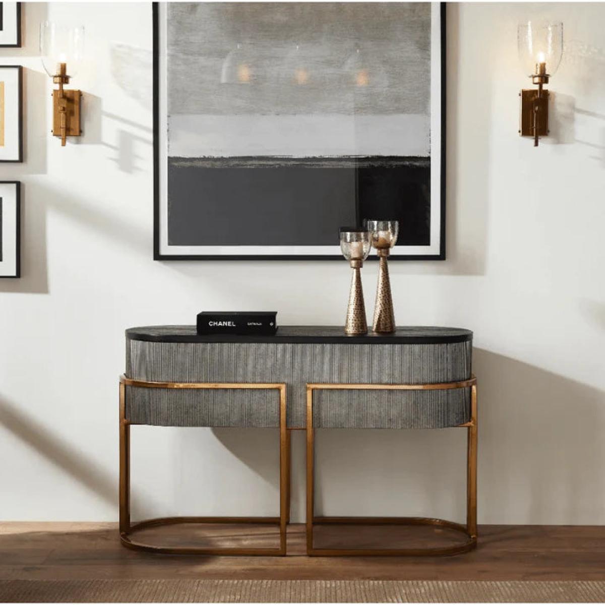 The Mindy Brownes Franklin console table is a sleek and versatile piece that lends itself well to both modern and traditional interiors. I love its streamlined silhouette and the subtle texture of the fabric, which adds a layer of visual interest without overwhelming a space. It works particularly well in hallways, under a large mirror, or as an entryway piece-perfect for displaying decorative items, lamps, or a small tray for keys and mail. For styling tips, keep the surface uncluttered with a few curated accessories-think a vase of fresh flowers or a statement sculpture-and layer with organisational trays or baskets underneath for practicality. Its elegant yet understated design makes it adaptable, complementing both a neutral palette and more colourful or patterned interiors.