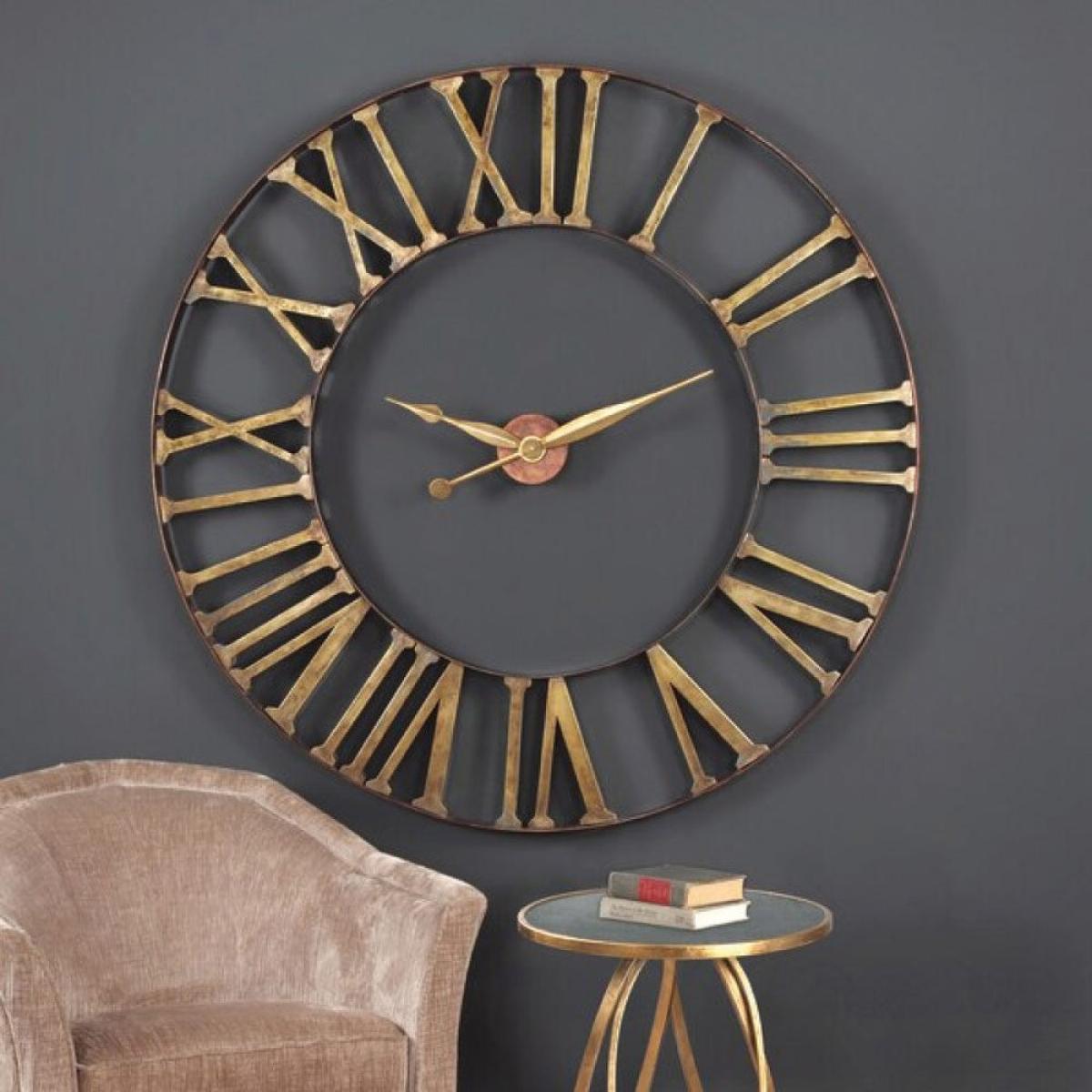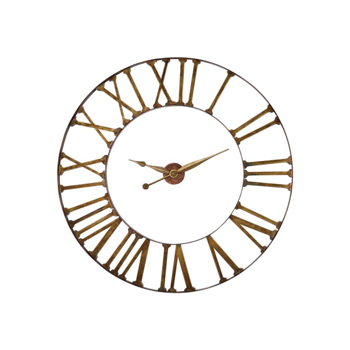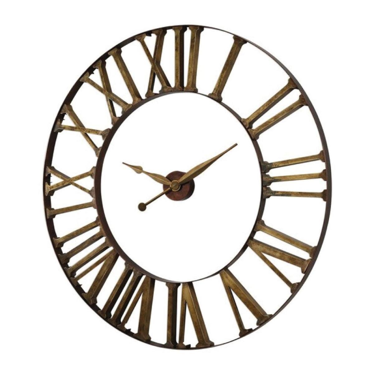Gorgeous over-sized iron clock features an antique bronze frame with antique golden champagne roman numerals and floating hands. *Moot Trading Ltd is not a lender and acts only as an introducer. The credit product is provided by Klarna Bank AB (publ). Credit is only available to permanent UK residents aged 18 and over, subject to status. Terms and conditions apply. Please note that the following products are not regulated by the FCA: Pay in 30 days and Pay in 3 instalments. Read More.