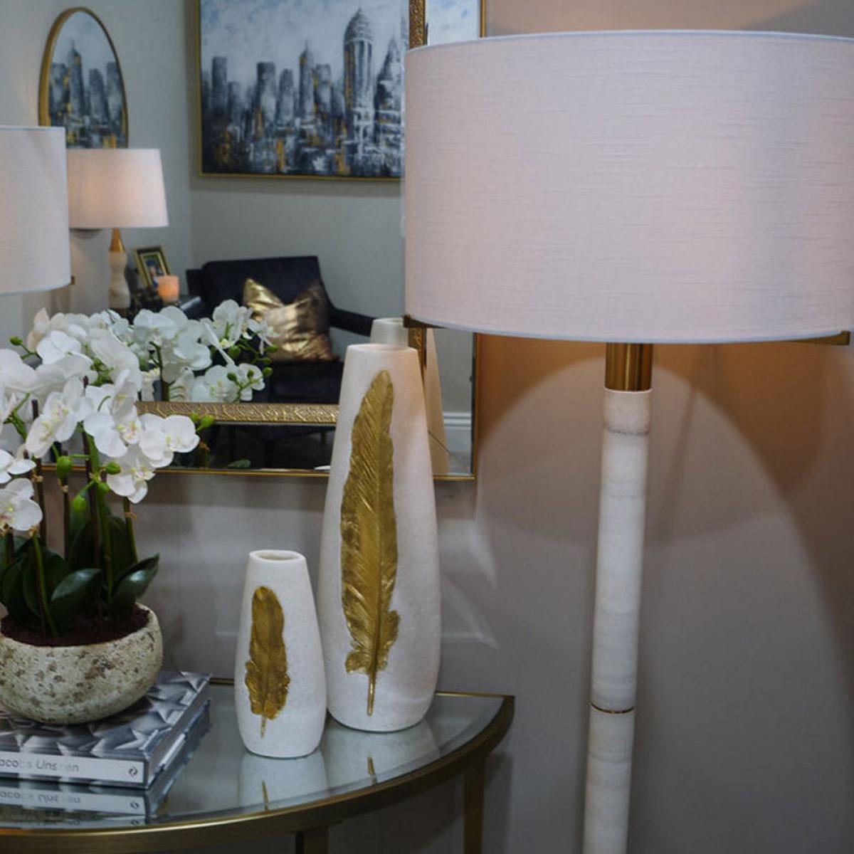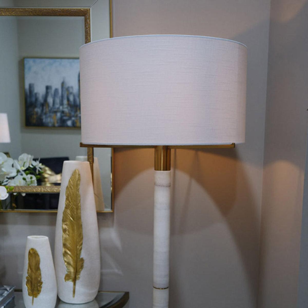 A stunning floor lamp. The design conveys a purity of line, shape, and material. A smooth marble column rises up from the brass base, and circular forms are echoed throughout, yet the effect is lo. View More. A stunning floor lamp. The design conveys a purity of line, shape, and material. A smooth marble column rises up from the brass base, and circular forms are echoed throughout, yet the effect is long and linear. Ideal for any room in the home.