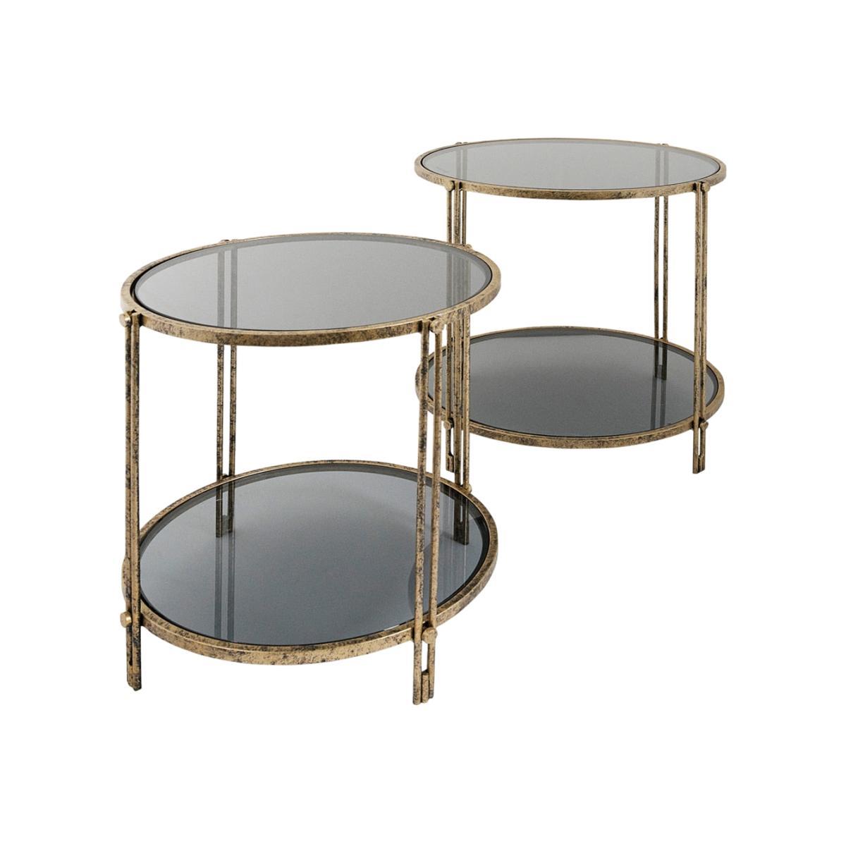 Antique Gold 51cm & 43cm diameter side tables, gold and black distressed frame with black smoked glass top and shelf. *Moot Trading Ltd is not a lender and acts only as an introducer. The credit product is provided by Klarna Bank AB (publ). Credit is only available to permanent UK residents aged 18 and over, subject to status. Terms and conditions apply. Please note that the following products are not regulated by the FCA: Pay in 30 days and Pay in 3 instalments. Read More.