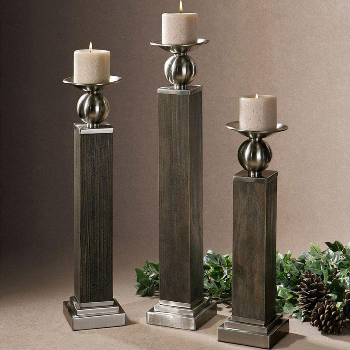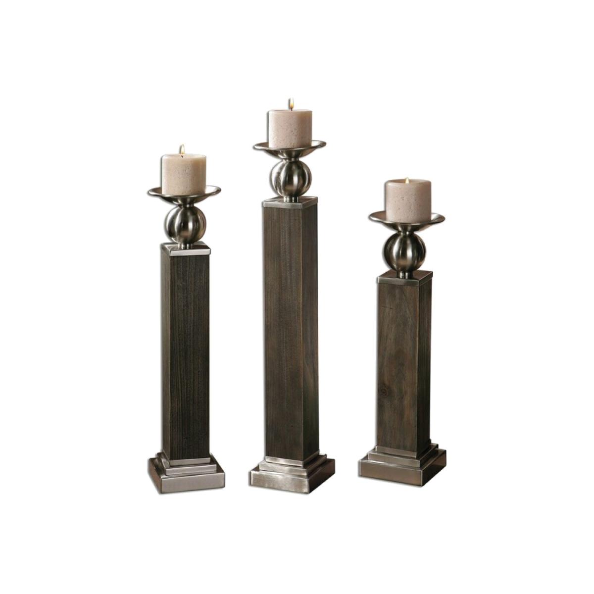 Light wood with a gray glaze and brushed aluminum accents. Dimensions: Large: H:61 x W:13 x H:13cm Medium: H:51 x W:13 x H:13cm Small: H:43 x W:13 x H:13cm