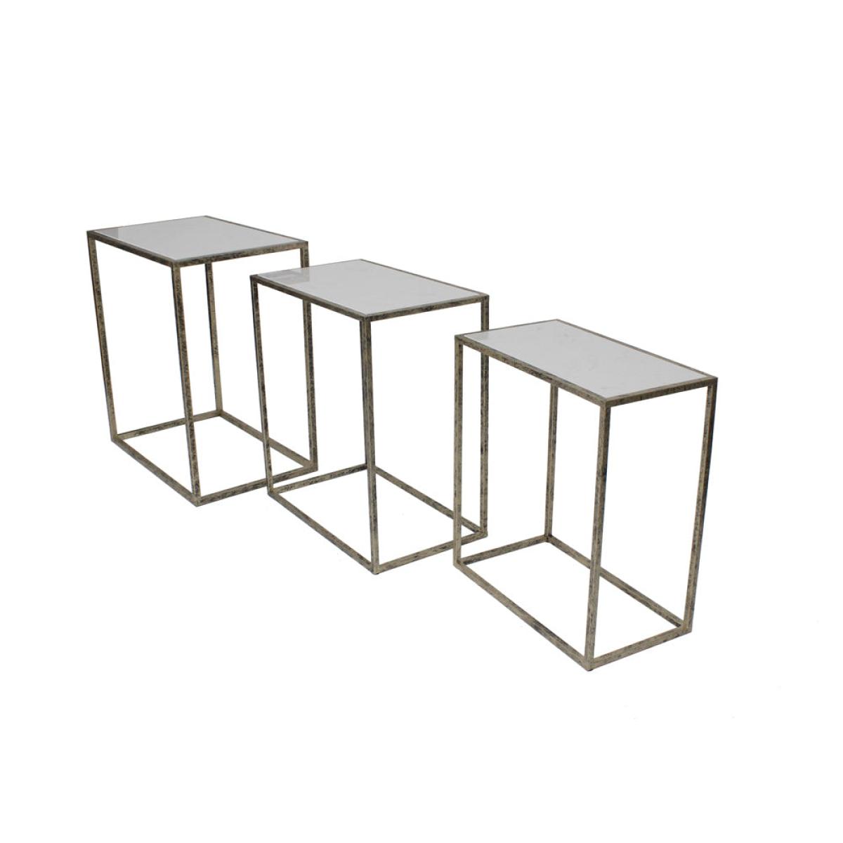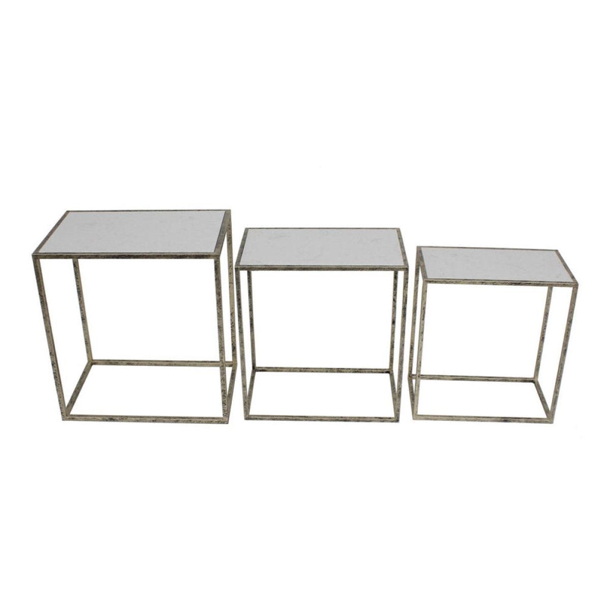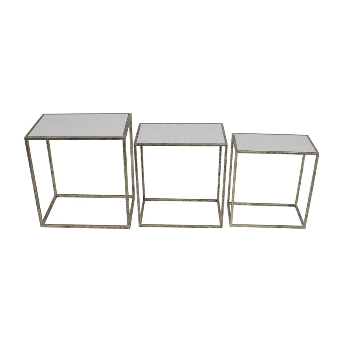 A stunning rectangular nest of tables that neatly stack on top of each other. Rectangular in design with a sleek clean lined surround Finished with a marble top and distressed antique gold The. View More. A stunning rectangular nest of tables that neatly stack on top of each other. Rectangular in design with a sleek clean lined surround Finished with a marble top and distressed antique gold The perfect choice for when space is limited.