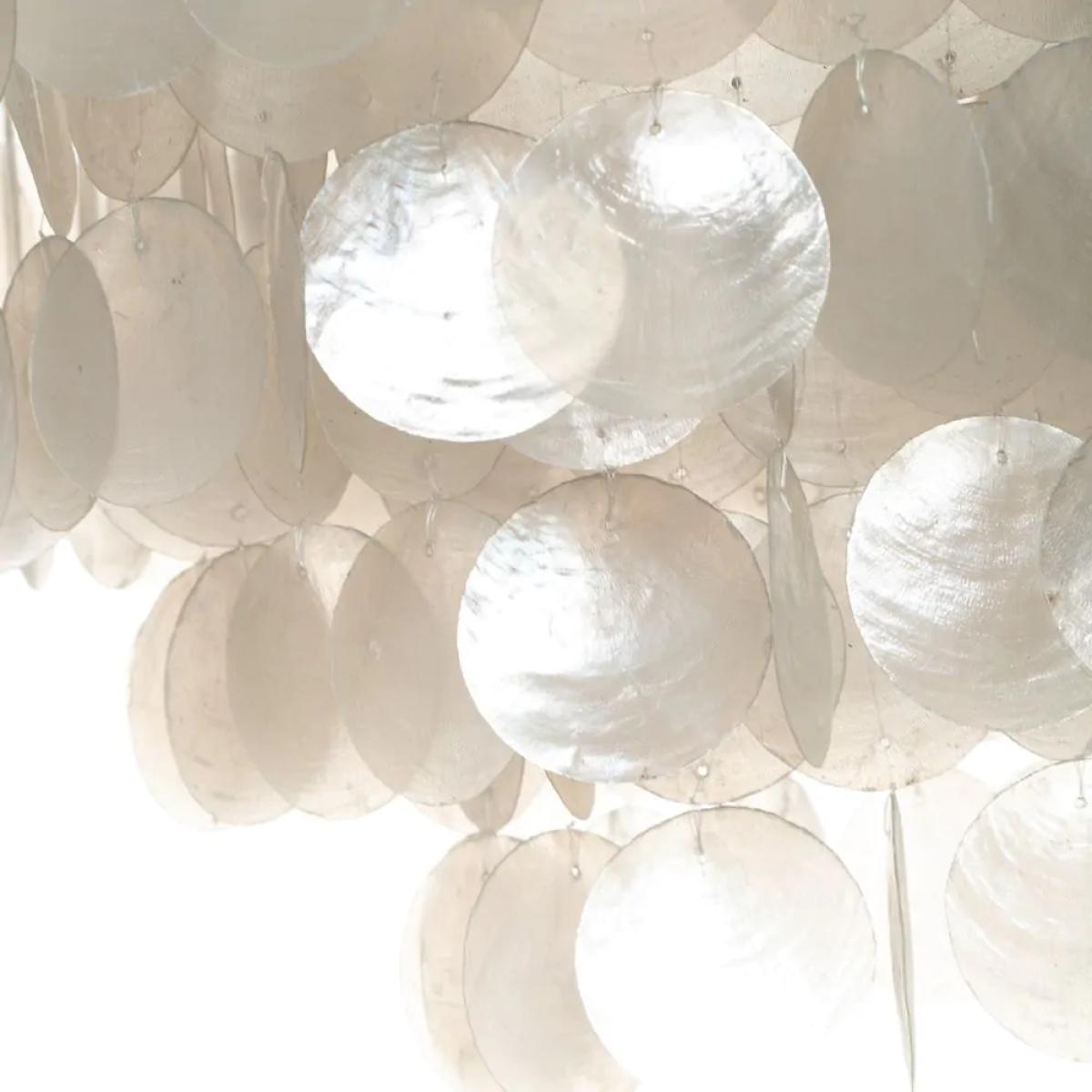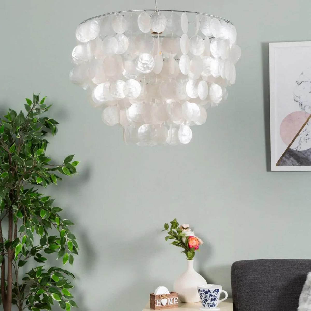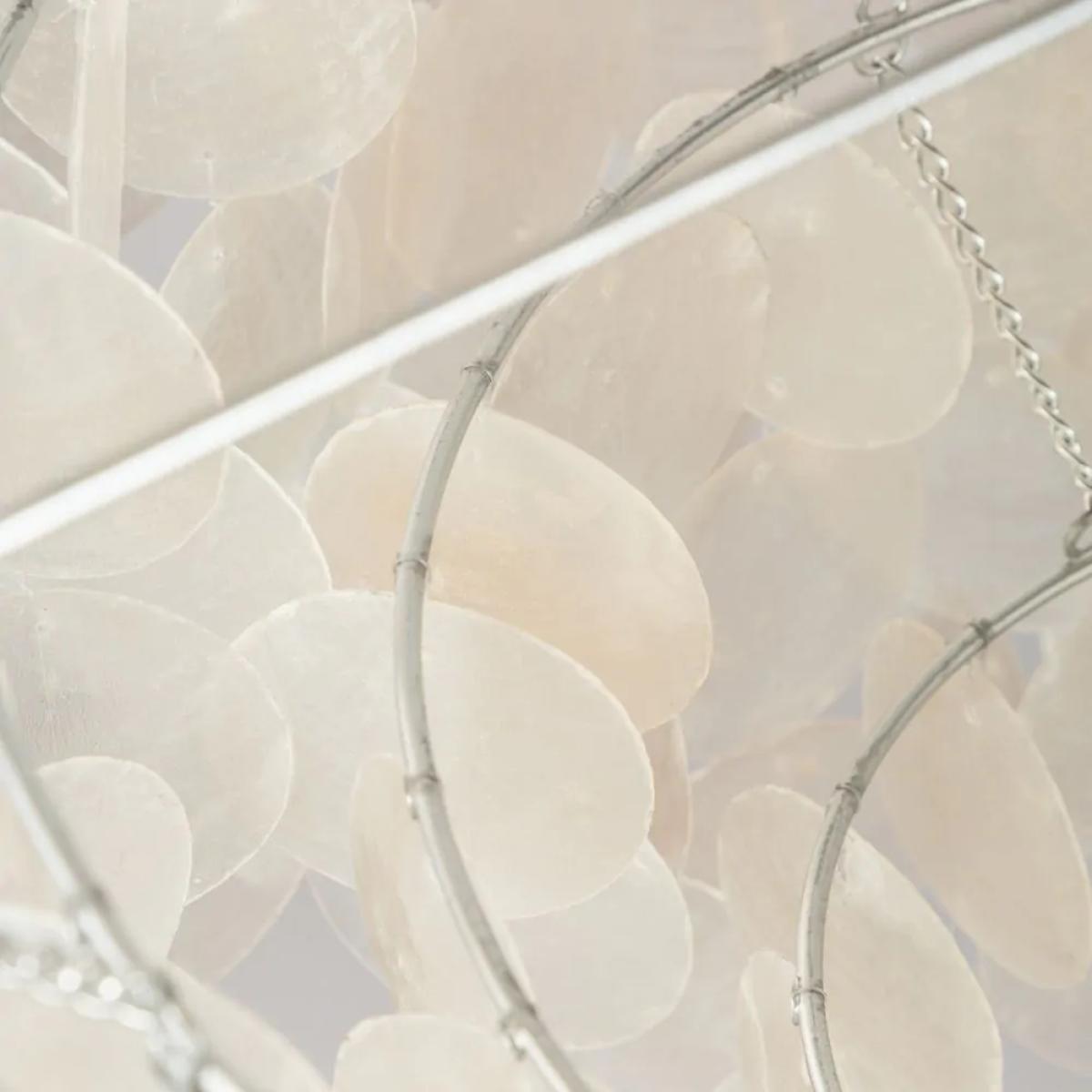 Illuminate your living room, dining area, or bedroom with the warm and enchanting glow of the Mindy Capiz Tiered Easyfit Shade. The stunning design of this easyfit shade features capiz shell hung all around the outside in a tiered style, creating a cosy and inviting atmosphere for gatherings or relaxation. Meanwhile, allowing a healthy glow of light to filter through the transluscent pieces and illuminate your space. Perfect for styling anywhere and without needing an electrician, simply fit this light shade on to any pre-existing light fitting, and you are good to go.