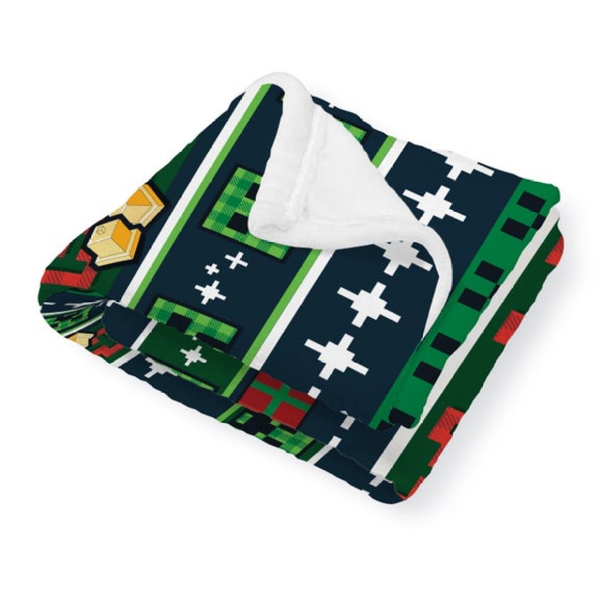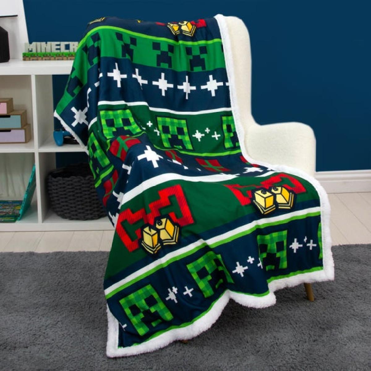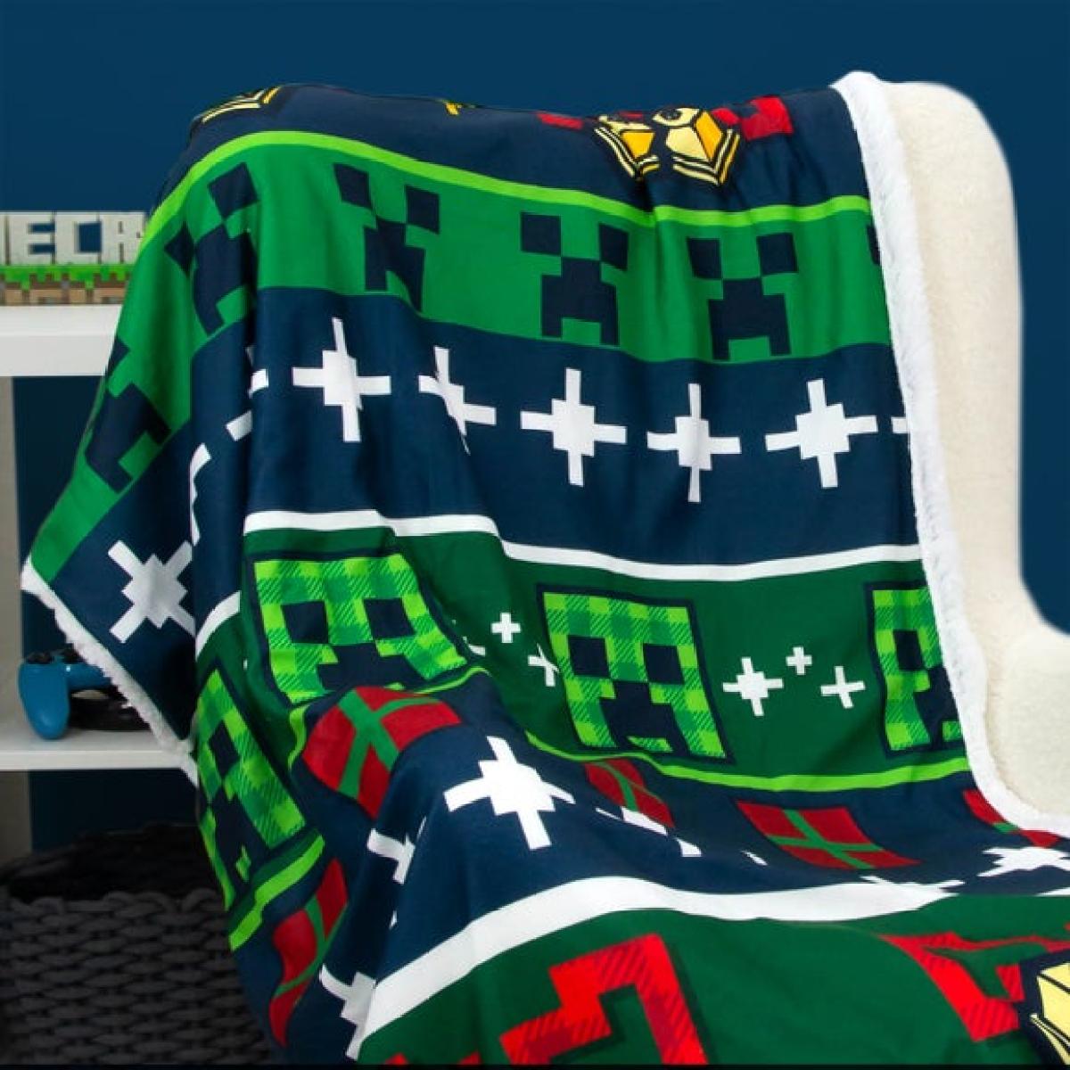* Soft and cosy, fleece composition * Festive, Minecraft design * Machine Washable * Corresponding items available Bring some festive fun to your gaming setup with the official Minecraft Bells Sherpa Fleece Blanket. This soft and cosy fleece composition is backed with an extra-warming sherpa layer, drawing inspiration from classic Christmas jumpers. The design features iconic Minecraft elements like Creepers, jingle bells, presents, and snow in the game's famous blocky style. Measuring a generous 100 x 150cm, it’s perfect for adding an extra layer of warmth to a bed or sofa. This durable blanket is machine washable for easy cleaning and makes a wonderful gifting option for any Minecraft fan. Corresponding items are also available in the official range.