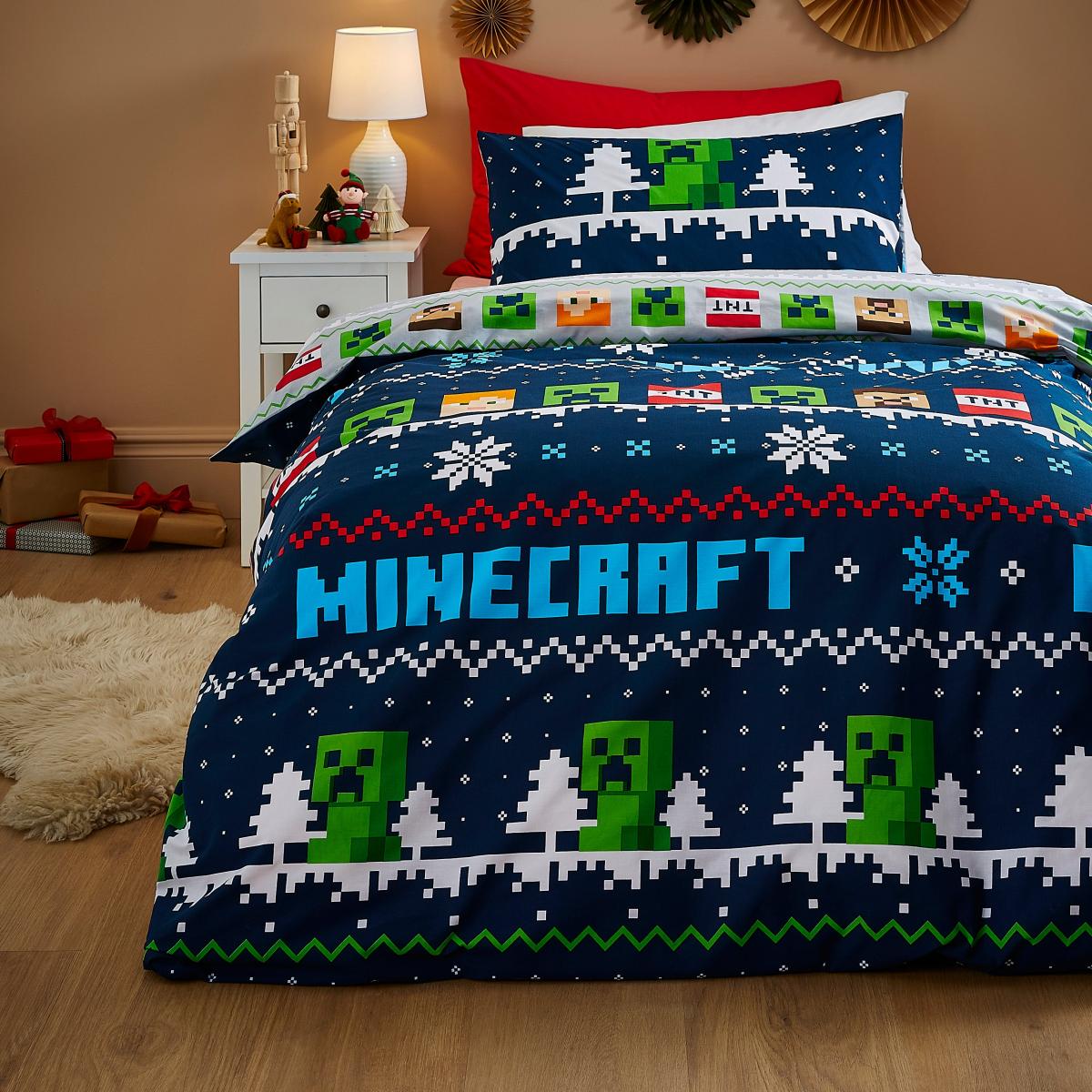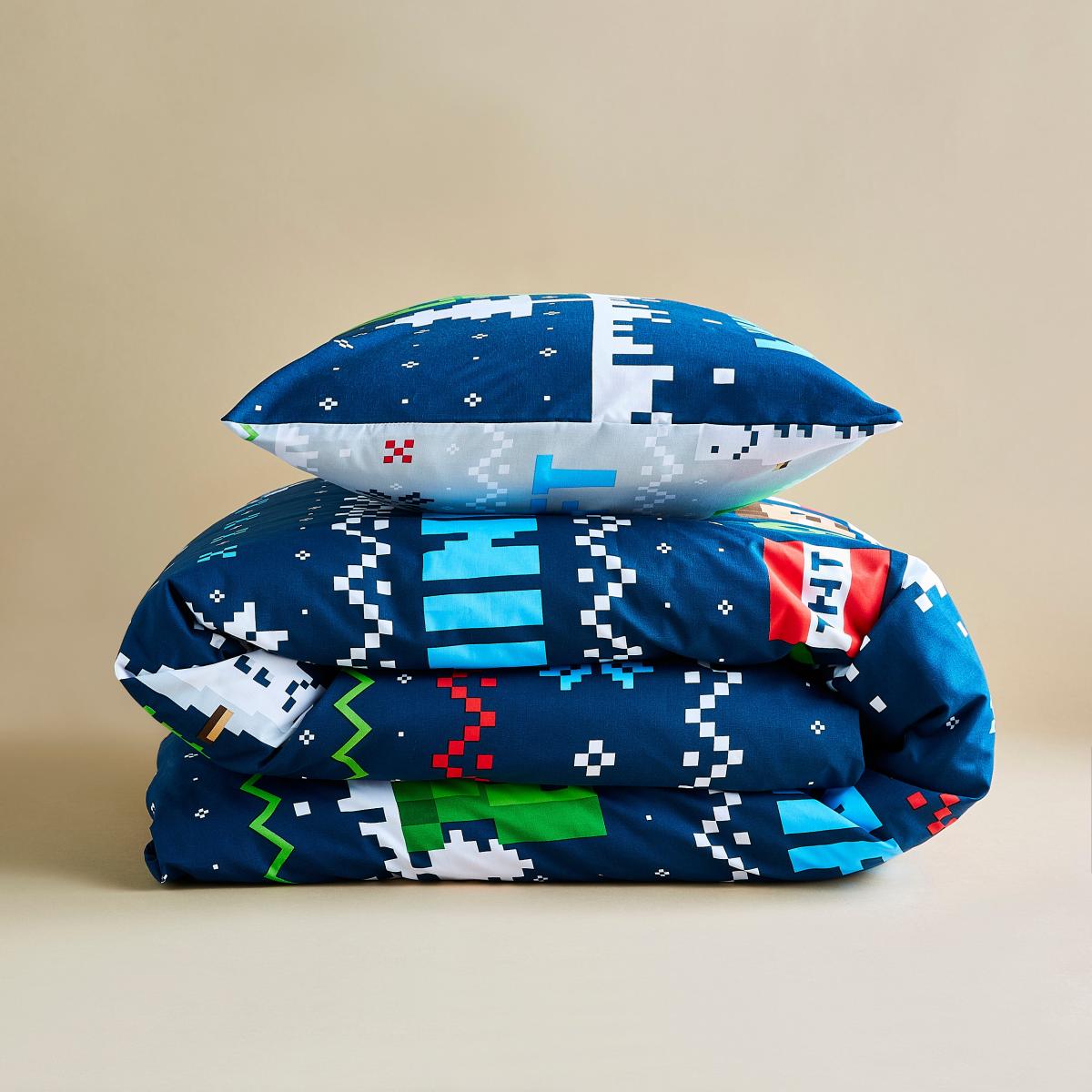 Minecraft Christmas Duvet Cover & Pillowcase Set, Single Blue