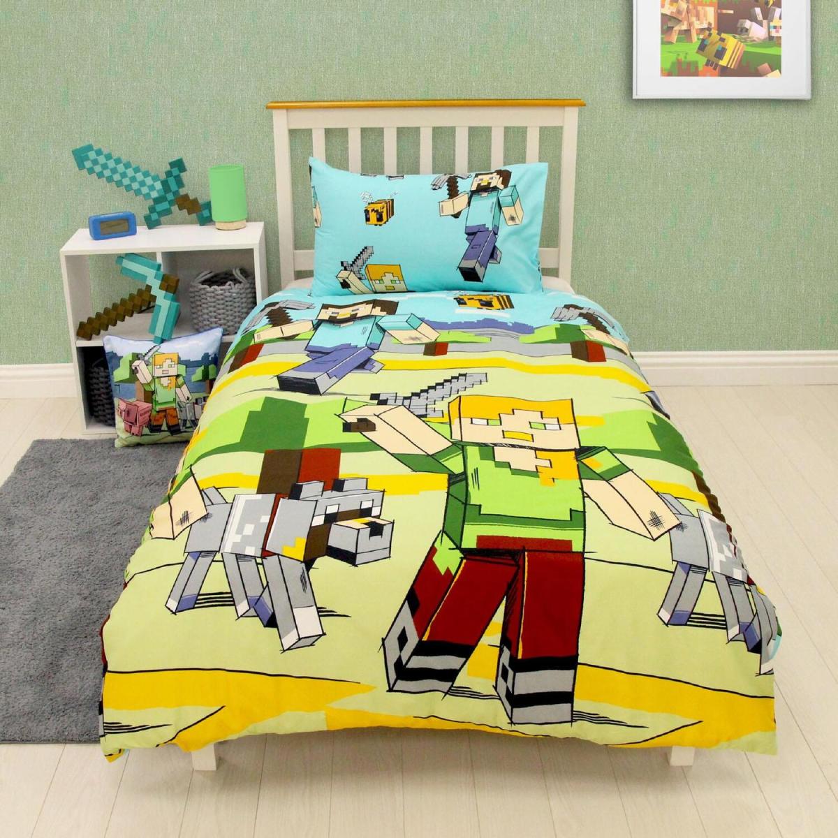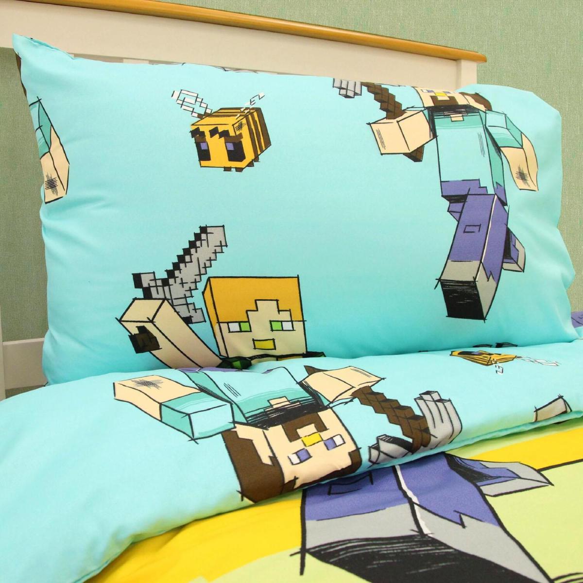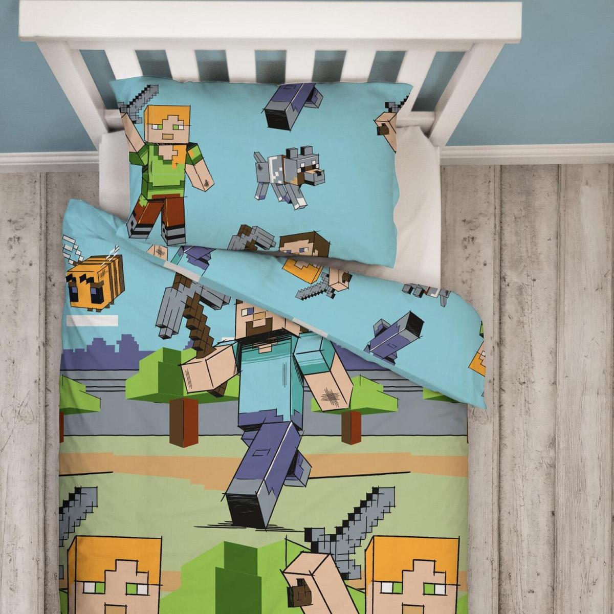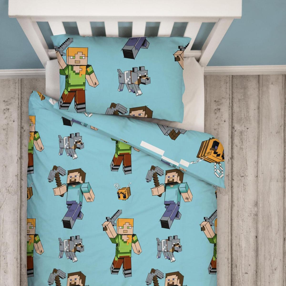 Build a Mine-tastic bedroom with this official Minecraft single duvet set featuring a repeating pattern. Designed for fans of the Minecraft game. Create. Explore. Survive. the night with this single duvet set. This duvet set will have your little gamer ready to score plenty of points in the Minecraft world! This quilt cover set comes complete with matching pillow case(s). This duvet is made from 100 soft polyester allowing for ultimate comfort and durability. This duvet cover will ensure the best night's sleep for your little ones.