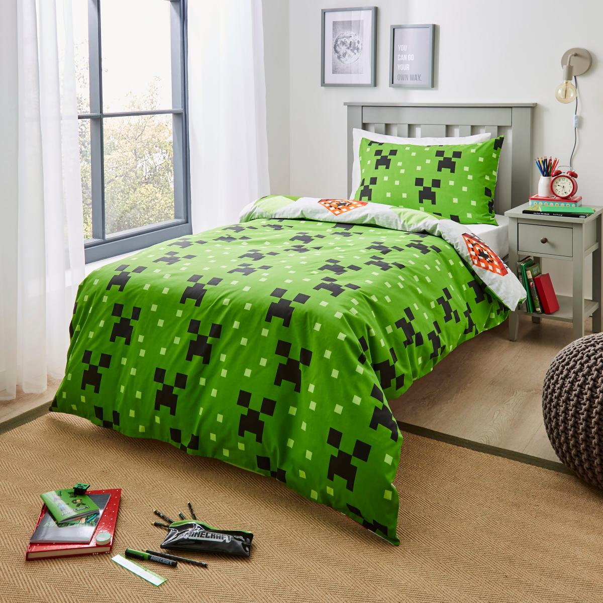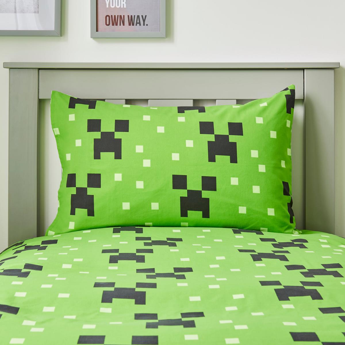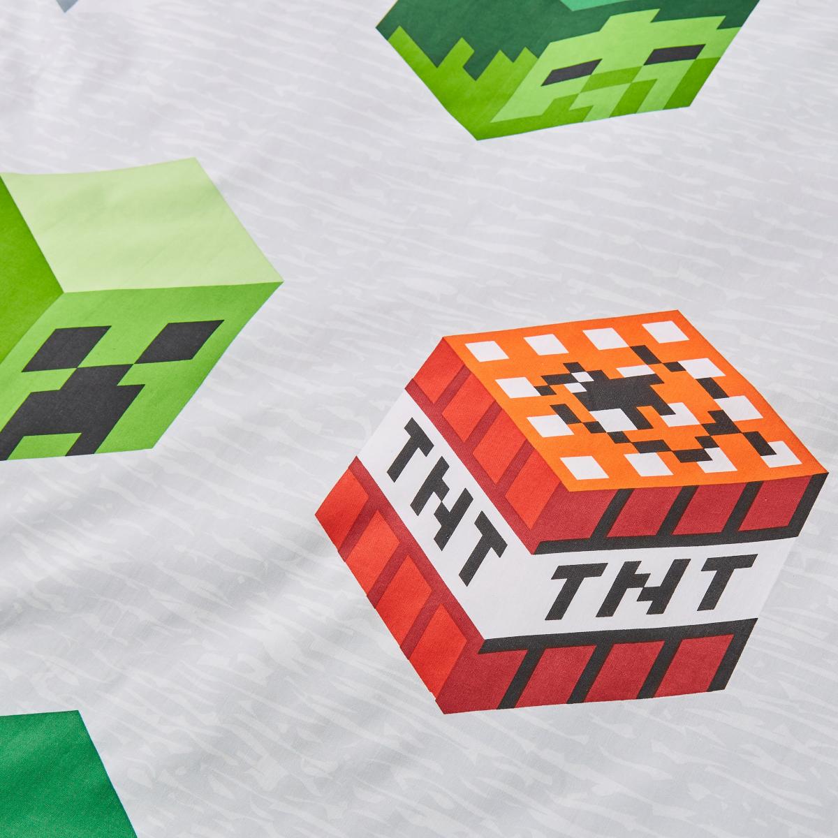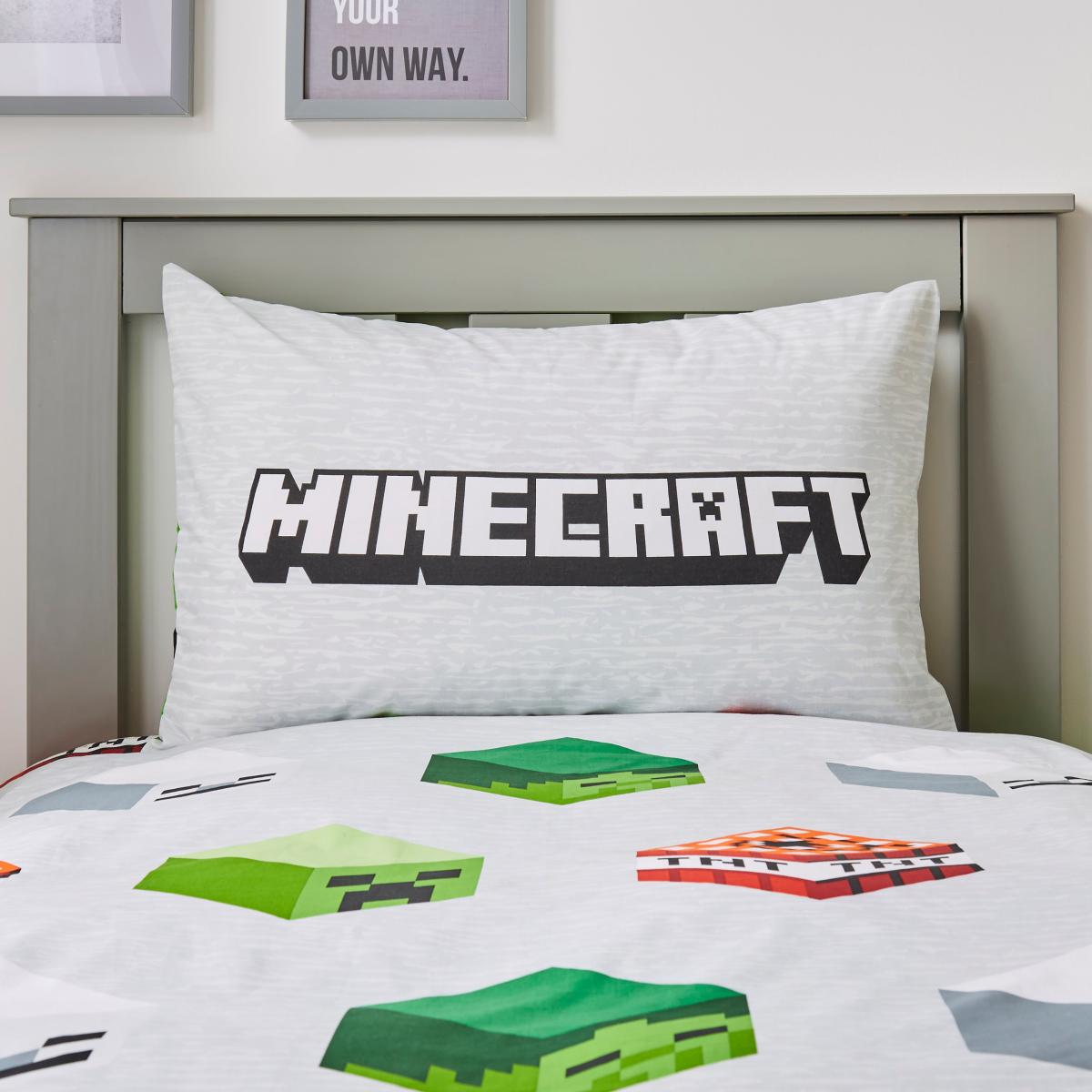 Minecraft Grey Single Duvet Cover and Pillowcase Set Grey/Black/Green