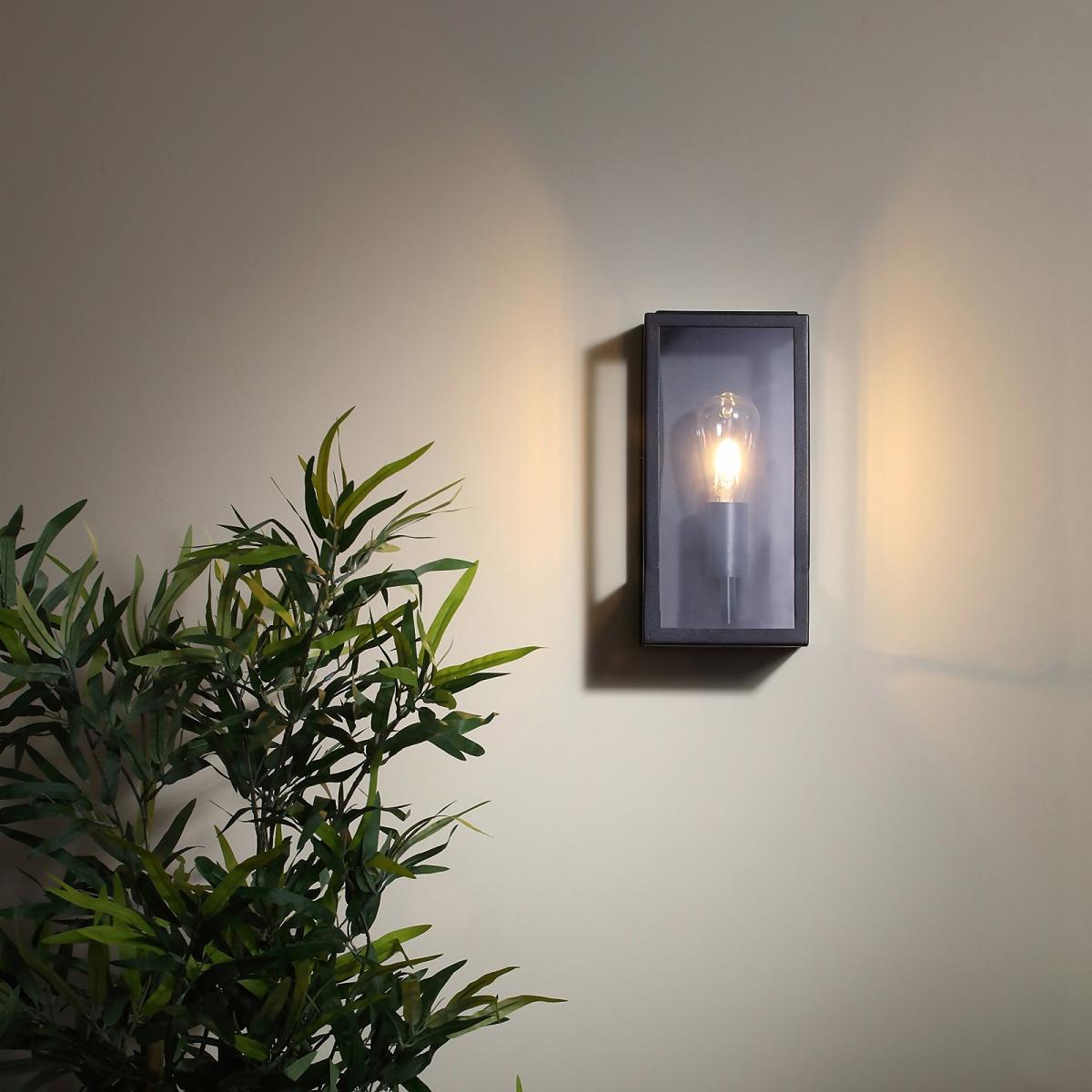 This Minerva Outdoor Box Lantern Wall Light, finished in black, will add a smart contemporary look to your home, especially against the entrance or doorway of your home.