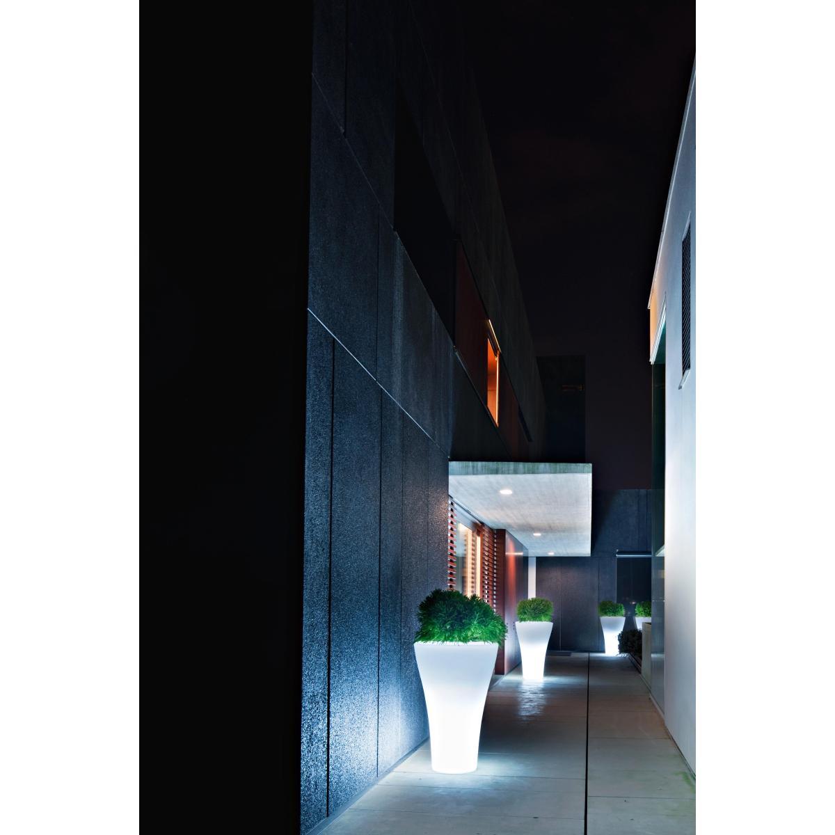 This jar Ming Extra High has generous dimensions (H 140 x Ø 93 cm). It is equipped of a lighting special exterior system IP 67. One loves its volumes and his modern design to the wide edge and to the very soft line. Rodolfo Dordoni thought this vase to the harmonious forms in contrast with the possible contained cactus plant, agaves, succulent and thorny cactus. The contemporaneity and the research of unusual definite solutions, make this very high jar, a true furniture element that decorates your exterior or interiors.
