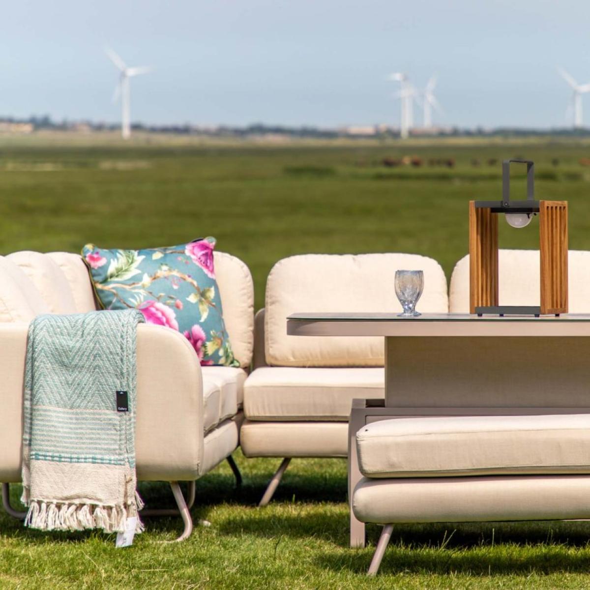 The Minho LED Solar Lantern39;s glow will help you to relax and enjoy your outside space late into the evening. The aluminium frame and teak wood strips create a stunning light when lit. The lamp is easy to position wherever you need it, thanks to the a sleek carry handle. With 3 light intensity settings, the lamp can run for up to 5 hours on the brightest setting, up to 8 hours on the middle setting, and up to 12 hours on the lowest setting, after charging by direct sunlight. It can also be charged by USB charger not included, which gives up to 32 hours of light on the brightest setting, and up to 60 hours on the lowest. *Dimensions: W20cm x D23.5cm x H34cm *Made From Solid Teak, and Aluminium *Non-Removable Battery Supplied