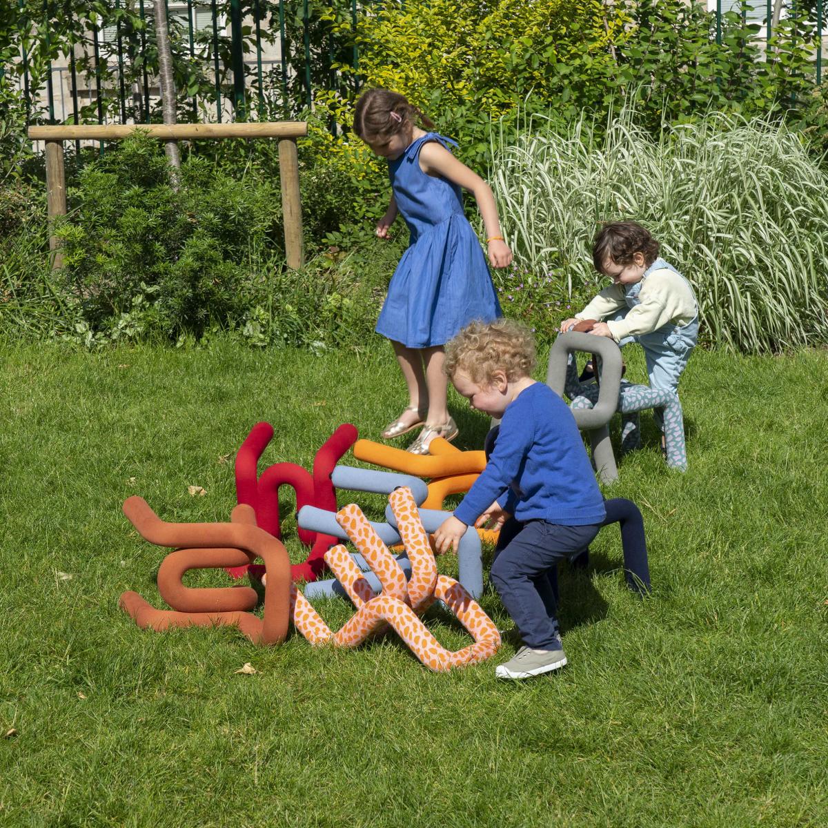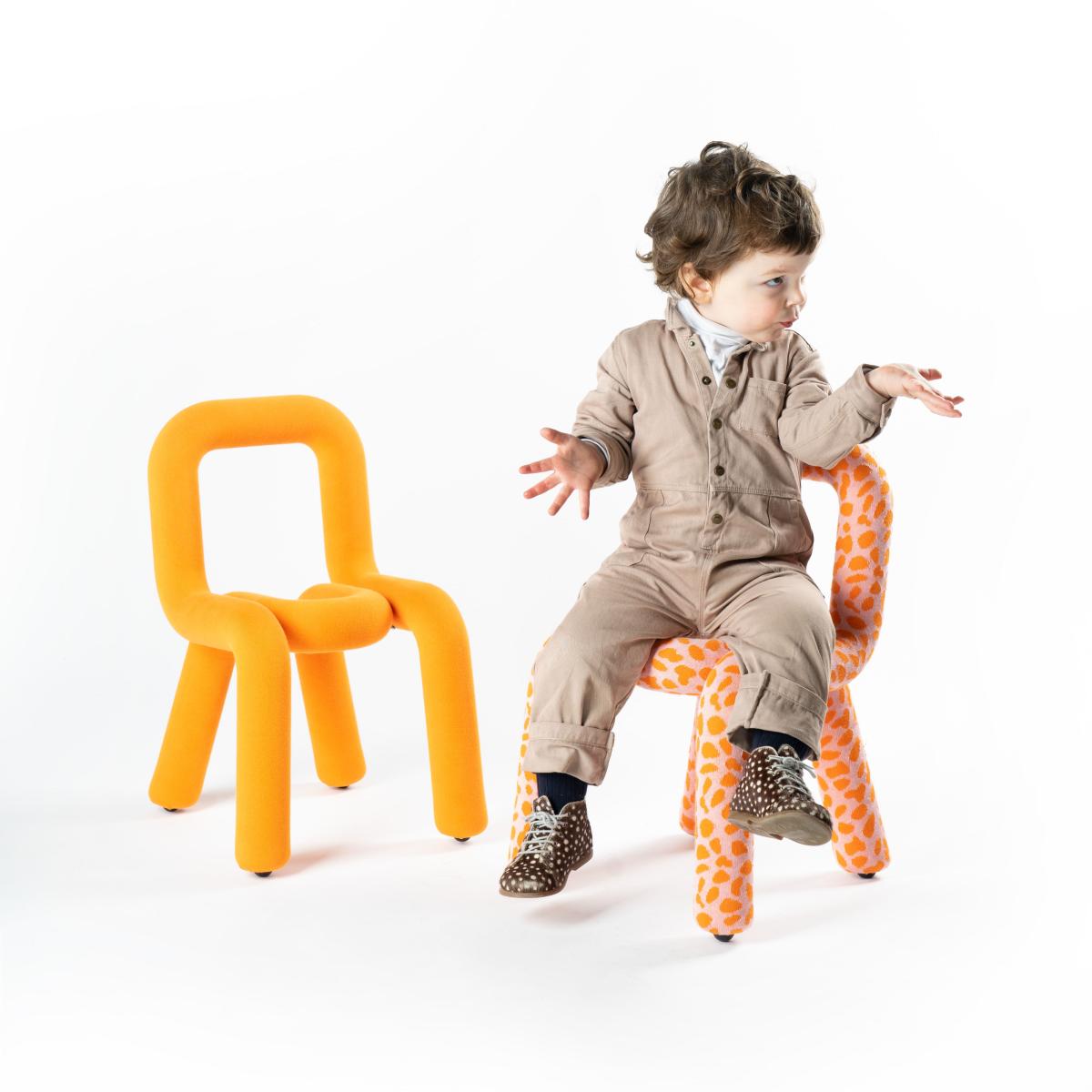 Big News: A delightful addition to the Bold family… Fans of the iconic chair from the Belgian-Swiss Big Game collective will adore the mini version, ideal for kids. Your little ones will no longer be envious of their elders! The Mini Bold features all of the formal characteristics of the Bold chair. Like its big sister, it comes in a multitude of vibrant colours. At first glance, it appears to be a miniature replica of its older sibling, but when you look closer, its proportions, tube diameter, and ergonomic design were redeveloped with kids in mind. The Mini Bold kids' chair is composed of two tubular sections, simply slotted together, inflated with a thick polyurethane foam. The OEKO TEX-certified cotton cover can be easily removed for machine-washing and to get rid of felt-tip pen, paint or jam stains. If the stains prove to be stubborn, you can always order a new cover and make the most of the occasion to try out a new colour and give your Mini Bold a new lease of life. Lightweight and soft, its design is all curves and makes it probably the most child-friendly, comfortable and soft chair around: a real cuddly toy! Its tubular shape and lightweight design make it easy to move, whilst its curves and softness make it safe for playtime. Ideal in terms of use and functionality, the Mini Bold also makes a big statement, with its colourful, fun and playful presence which make it a welcoming piece anywhere in the home, a piece that isn't just for kids' bedrooms! As its cover can be changed whenever you like, it will initially be used by your children and then, perhaps, your grandchildren…