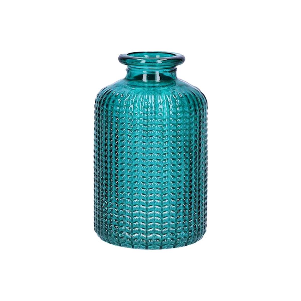 Mini glass bud vase in light green, Perfect for displaying a few buds or stems. Perfect as a centrepiece for a table or windowsill. Embossed pattern. The opening of the bottle is 2 cm.