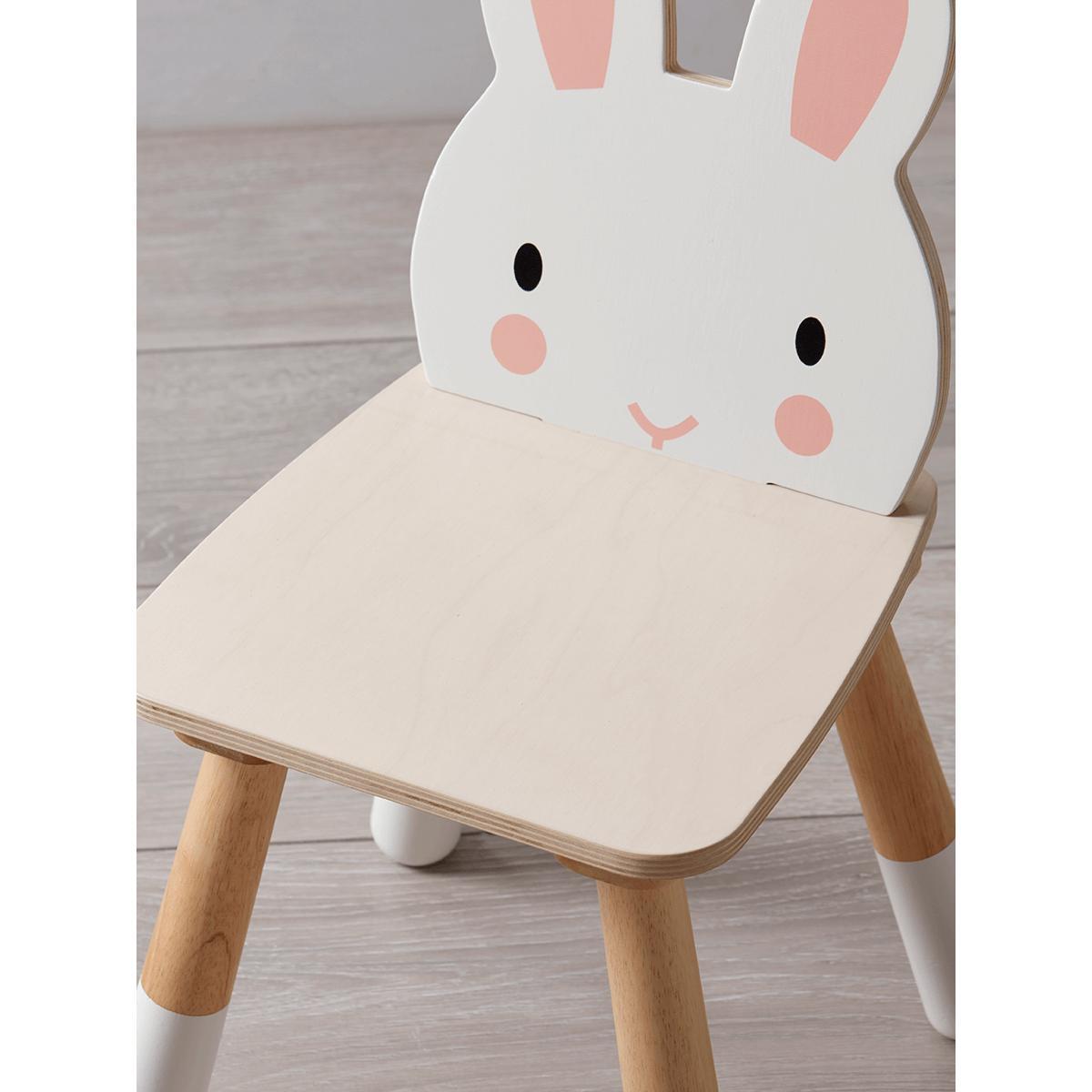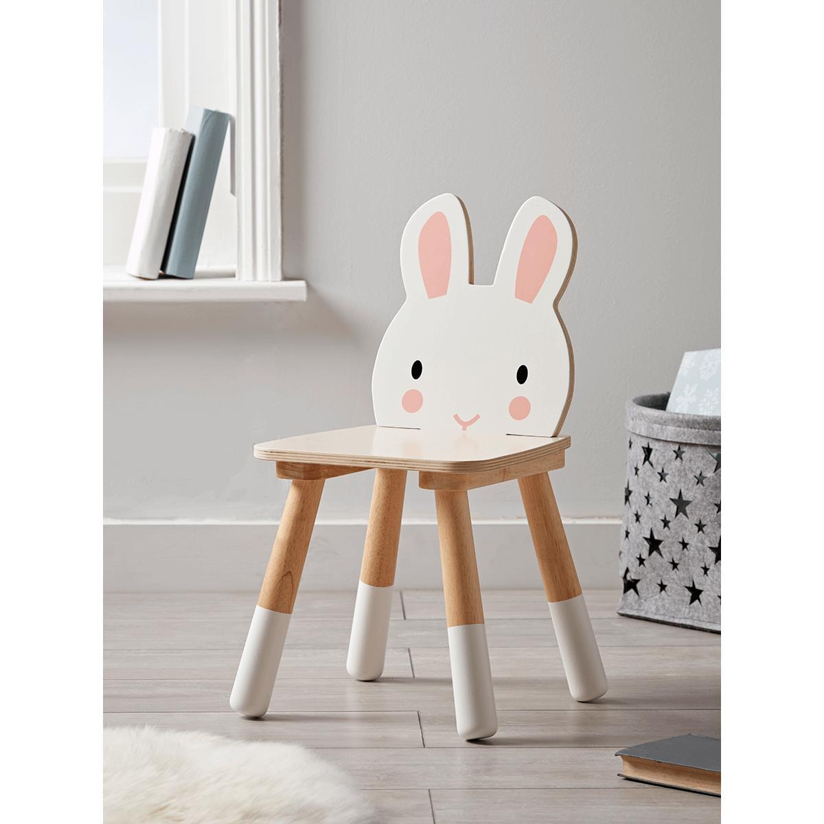 Beautifully crafted from sustainable rubber wood with four sturdy, white and natural dipped-effect legs and a comfy square seat, our sweet rabbit chair makes the perfect resting place for tired little legs. The white backrest is shaped like a rabbit’s head, with a friendly face and rosy cheeks. Tuck under a table or desk, or create a cosy reading corner. Also available in a. Bear. Design.