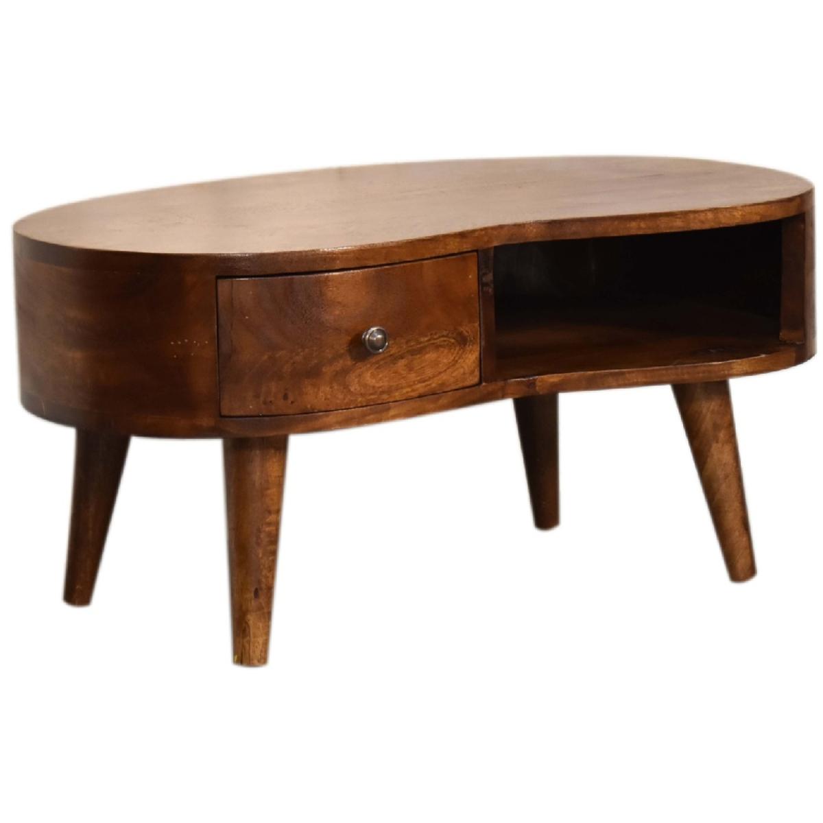 Mini Chesnut S-Shaped Wave Coffee Table With 1 Drawers And Shelf - Brown