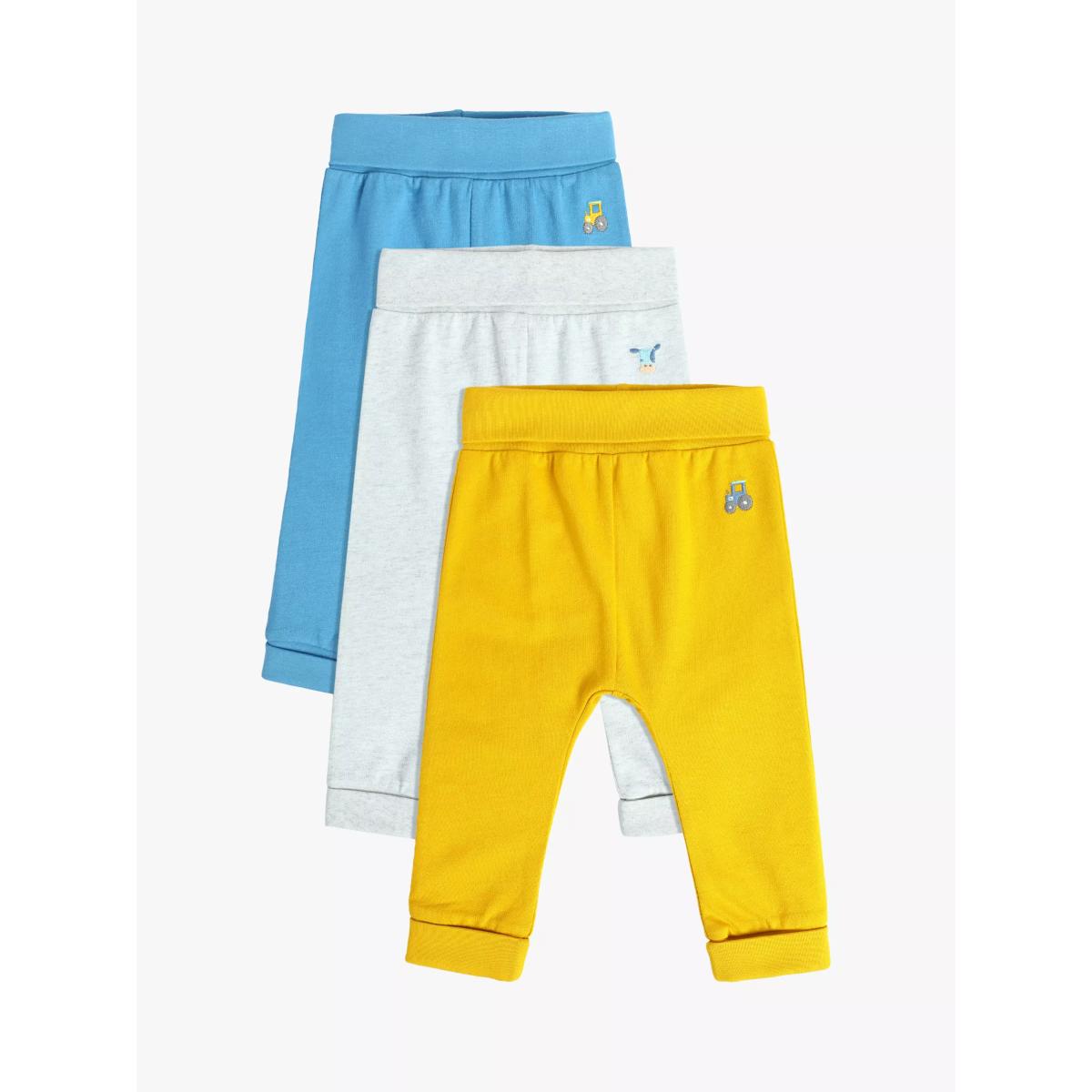 Perfect for playtime and cosy days, these joggers will become a staple in your little one's wardrobe. Supplied in a handy three-pack, they're made from the softest cotton, with a roll-up, roll-down waistband and cuffs, so they'll grow with your baby. They also feature a subtle farm animal or tractor embroidery detail.