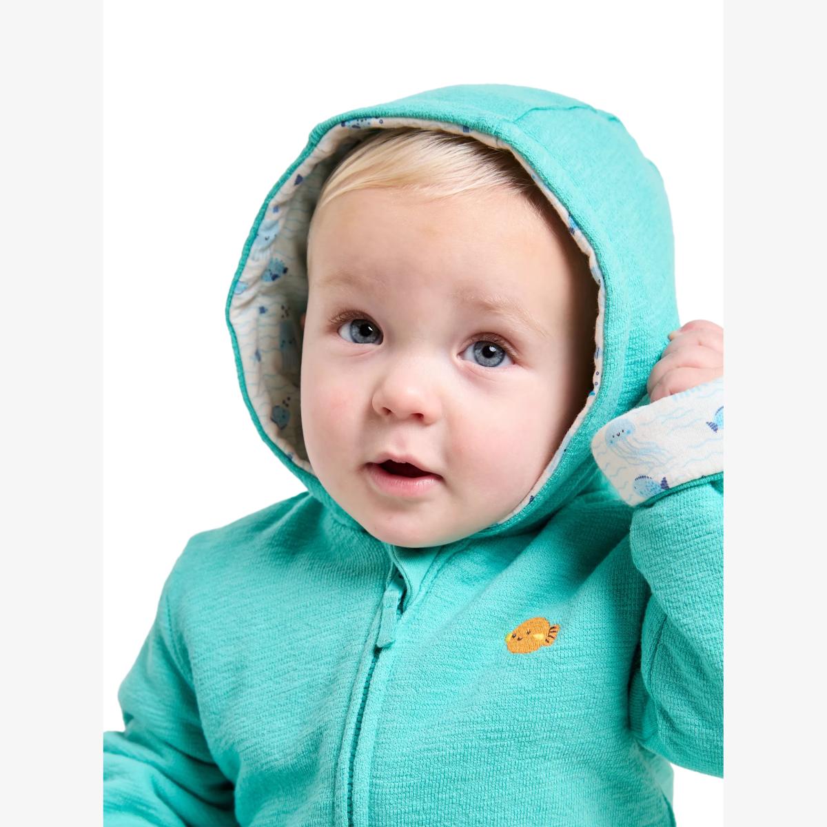 Mini Cuddles Baby Cotton Ocean Adventure Hooded Jacket, Green