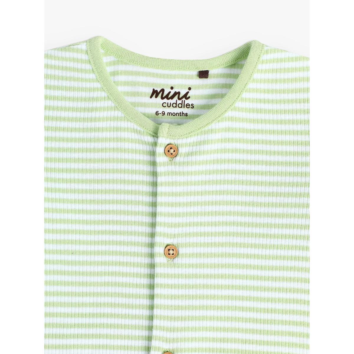 Mini Cuddles Baby Cotton Striped Bodysuit, Green