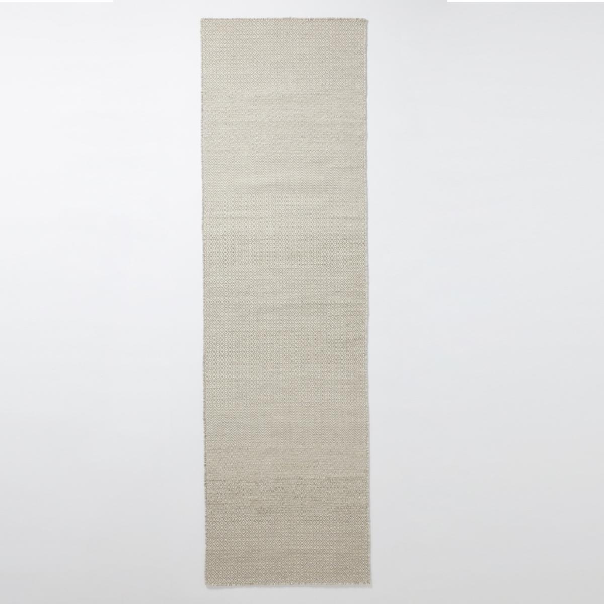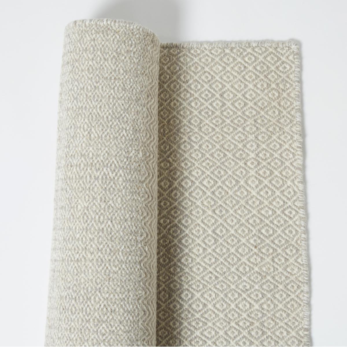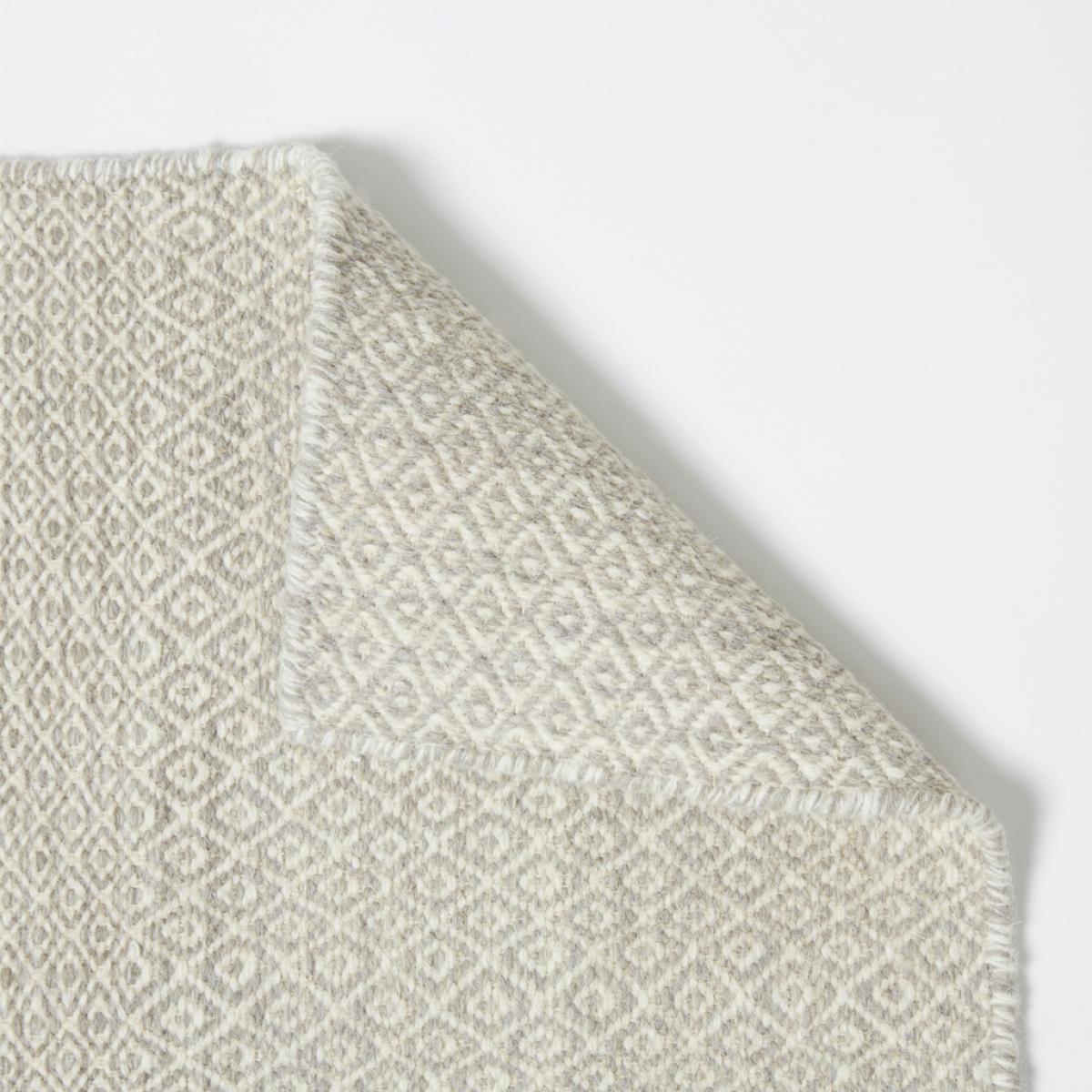 Designed exclusively by The Conran Shop, this Mini Diamond Kilim Runner in a grey hue has been woven and dyed entirely by hand in India and would make a contemporary and comfortable addition to your interior. Kilim rugs have been produced since ancient times, and this Mini Diamond Kilim Runner has been updated with a luxurious cotton and wool blend. The rug's distinctive geometric design is almost an optical illusion, formed of tessellating diamonds and triangles that seem to interlock to become outlines of diamonds and squares. The colourful hues and soft texture make this kilim runner a subtle focal point, wherever you choose to place it.
