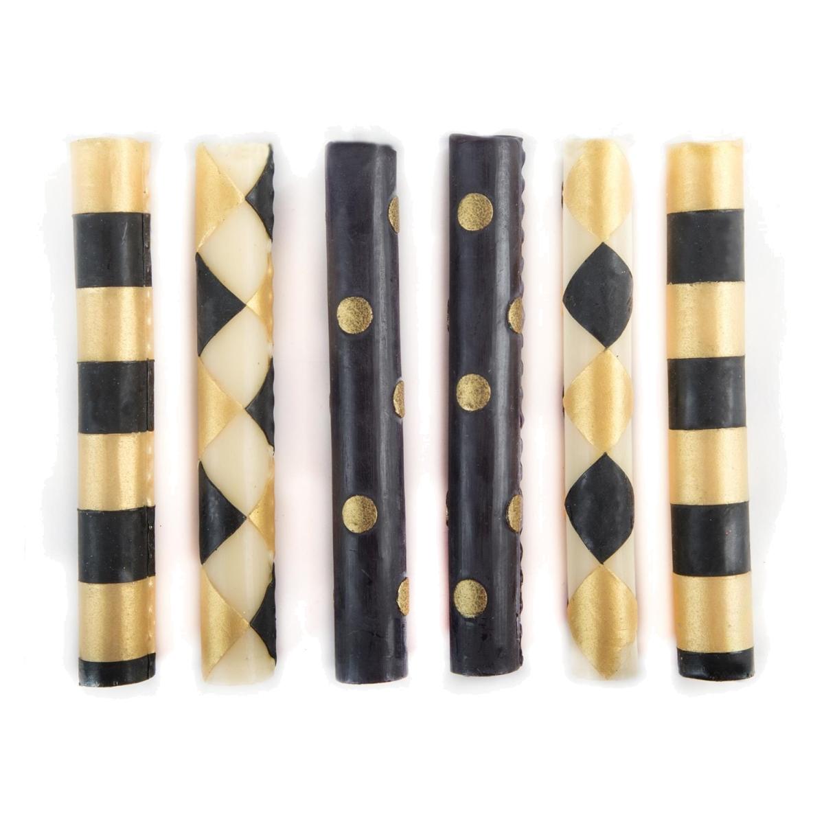 Make any meal one to remember with these mini dinner candles. Expertly blended from beeswax, they’re adorned in stripes, dots and diamonds in a classic colour palette.