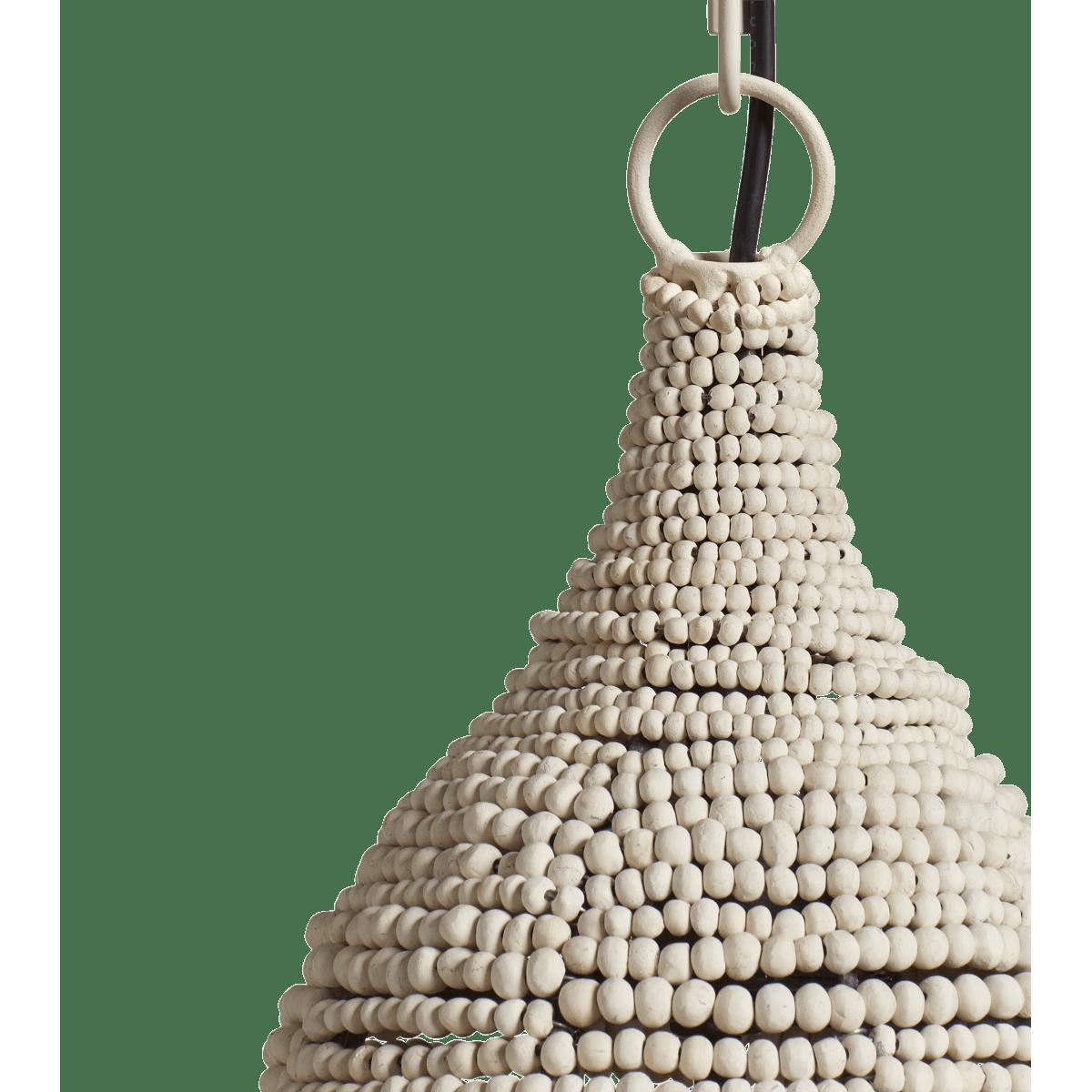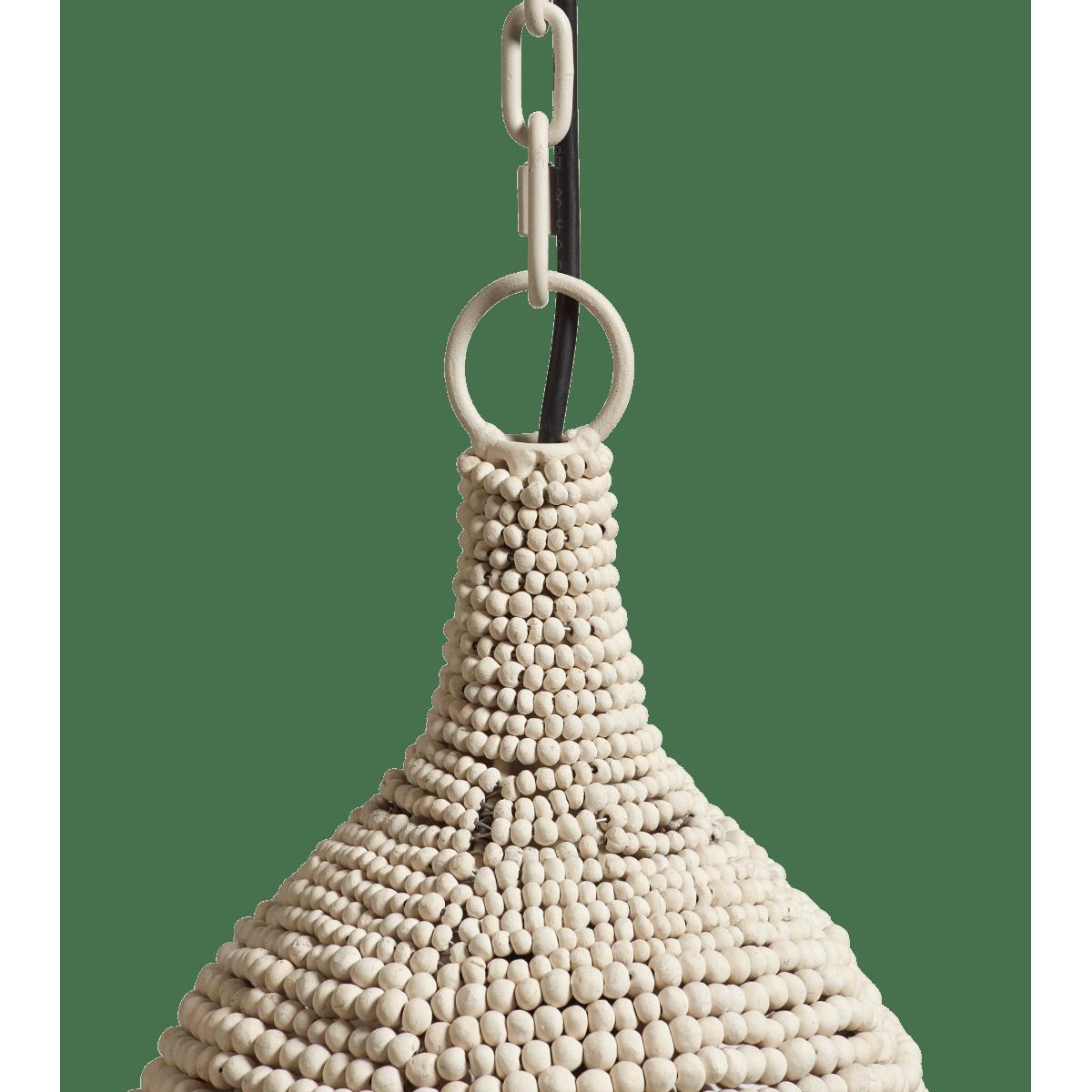 The mini version of our Eris Bead Pendant Lamp has been designed exclusively for OKA and is handmade by a company committed to creating employment for local South African women in need; many of whom have been affected by poverty and HIV. The women learn to specialise in specific techniques, which they are able to execute from the comfort of their own homes. This was one of the reasons the founder decided to work with hand-rolled clay beads as the clay comes from local mines, requires craftspeople and doesn’t harm the environment. The beads are dried in the sun, kiln fired and dyed for an attractive watercolour appearance with individual characteristics.