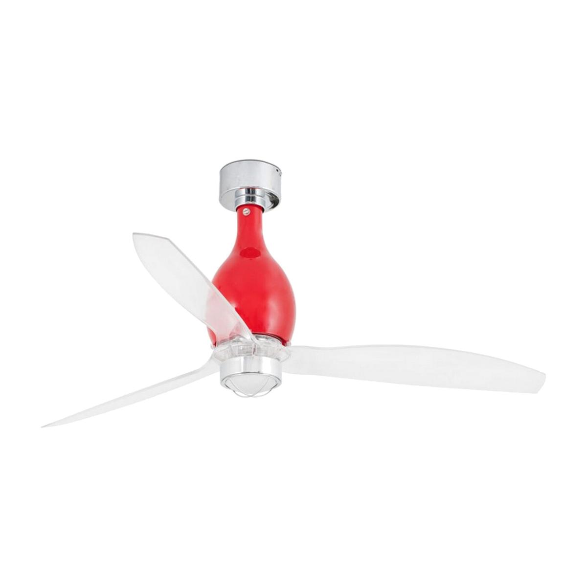 MINI ETERFAN is a ceiling fan with light with an industrial and modern style. This ceiling fan is ideal for the ventilation of areas ranging from 13m2 to 17'6m2 and has a low-consumption DC motor. This shiny red fan with transparent blades comes with a reverse function summer-winter, so you can also use it in winter, improving the efficiency of your heating system. Activated by remote control included. Great for a smaller space, the Mini Eterfarn LED Shiny Red and Transparent Ceiling Fan is as useful as it is good-looking. The blades move cleanly through the air keeping you comfortable in any season while the low-consumption DC motor offers 6-speeds and a reverse wintersummer feature.