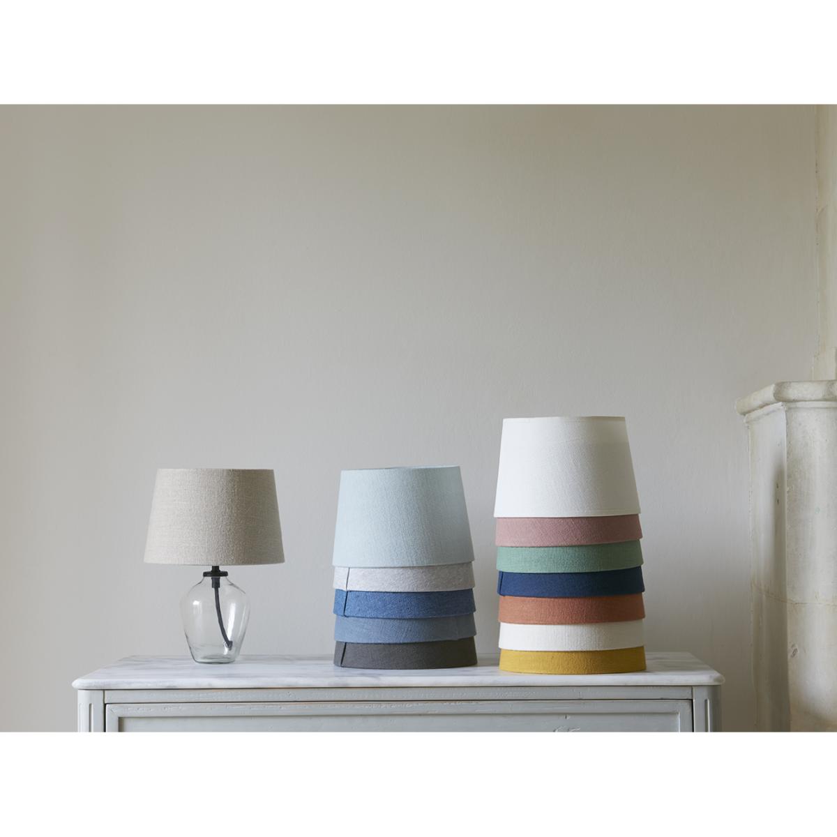 I love this little lamp for its versatile and contemporary look - the clear glass base adds a touch of transparency and lightness, making it suitable for both modern and more traditional interiors. It works particularly well in cosy living spaces, side tables, or bedside setups where a soft, ambient glow is desired. Practical styling tips include pairing it with neutral tones for a minimalist aesthetic or adding colourful accessories nearby for a playful contrast. Its size makes it ideal for smaller surfaces or to add layered lighting without overwhelming the space, making it a practical and stylish choice for a variety of interiors.