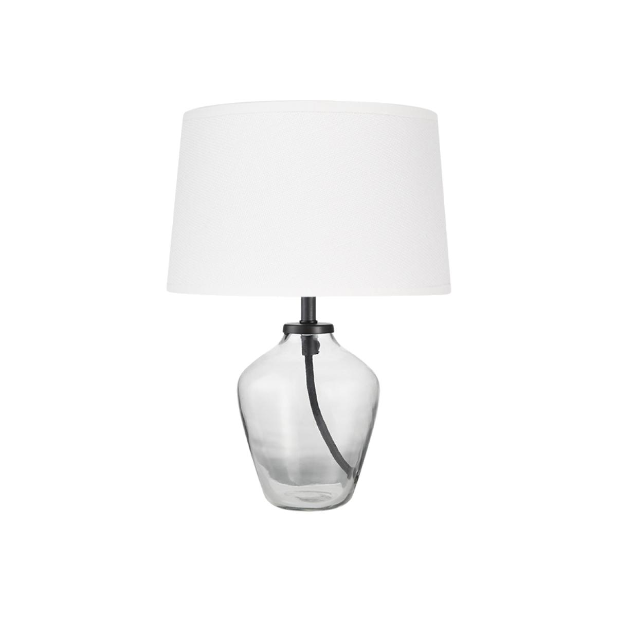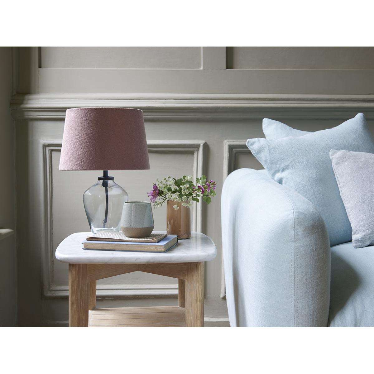 I love this small lamp for its versatility and understated charm. Its compact size makes it perfect for bedside tables, open shelving, or even as a desk light, adding a touch of warmth without overwhelming the space. The clear glass base offers a modern, clean look that can work well in various interiors, from contemporary to minimalist or even cosy coastal schemes. Practical styling tips include pairing it with monochrome accessories for a sleek finish or clustering a few in different sizes to create a balanced, relaxed vignette. Its simple form makes it a practical yet stylish addition that brings light and personality to smaller surfaces.