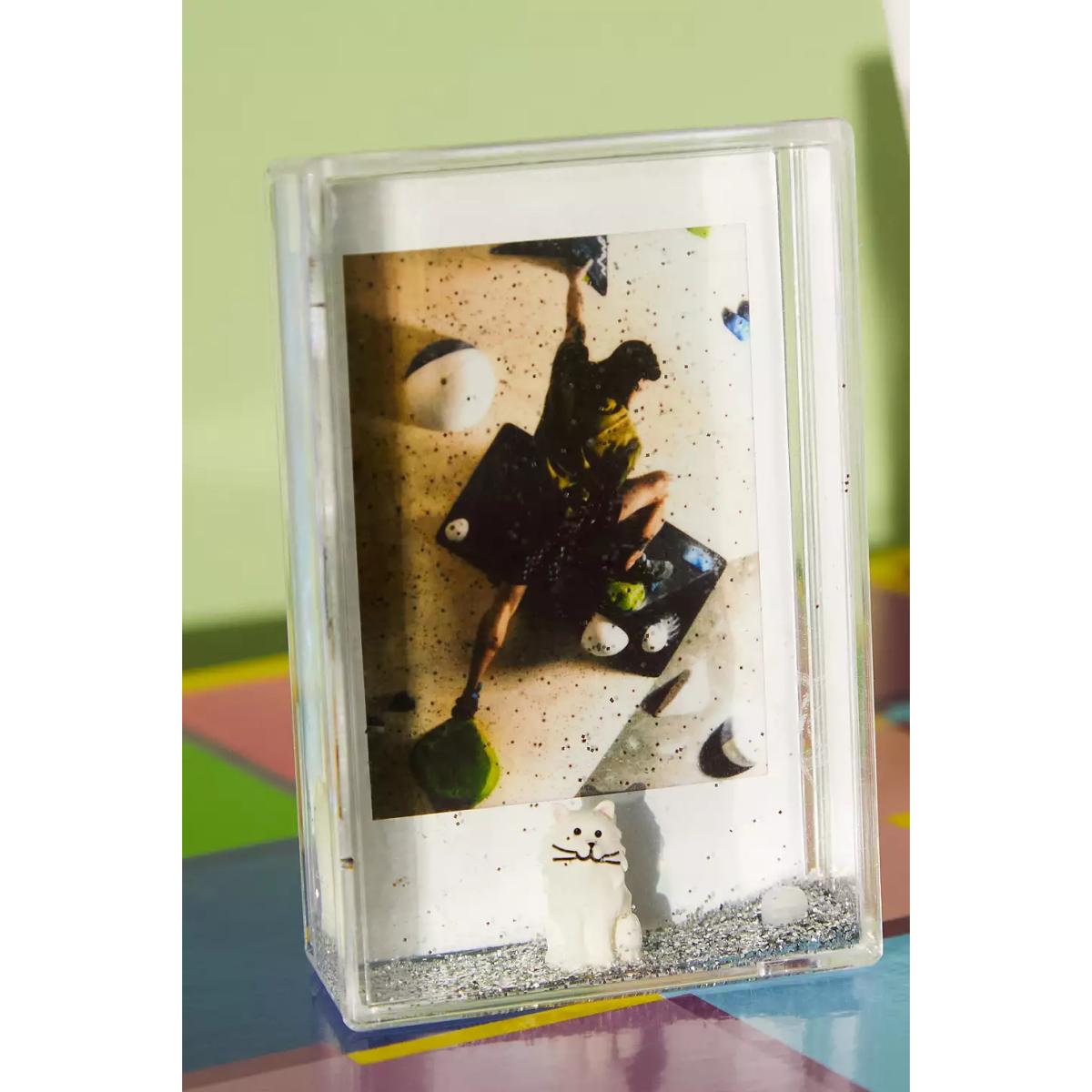 Make your Instax mini pics look as cute as a kitten in this glitter-filled picture frame with cat graphics at the front. To open, use a thin object like a pen to insert between the 2 sides and pull apart. UO Exclusive. **Content + Care** \- Plastic \- Wipe clean