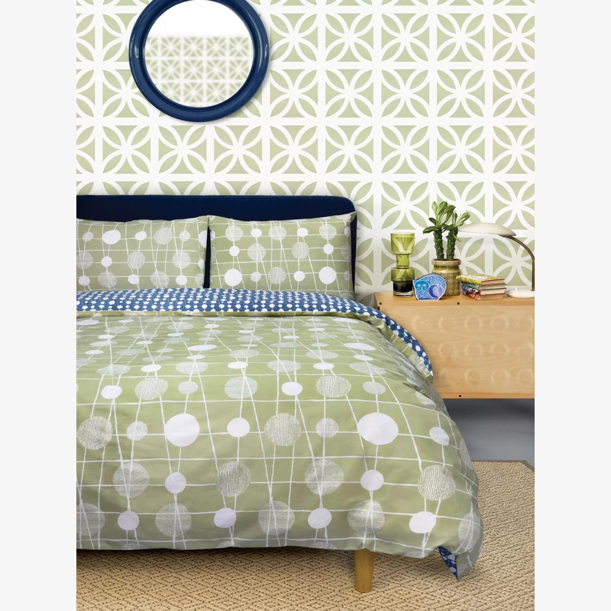 The abstract lines and dots of this Pavilion pattern echo the architecture of the Abacus Screen - a key feature of the 1951 Festival of Britain on London's South Bank. The single set comes with one standard pillowcase. All other sizes come with two standard pillowcases. Bedding sizes To fit duvet/pillow size (cm) Standard pillowcase, L75 x W50cm Single duvet cover, L200 x W135cm Double duvet cover, L200 x W200cm King duvet cover, L220 x W225cm Super king duvet cover, L220 x W260cm