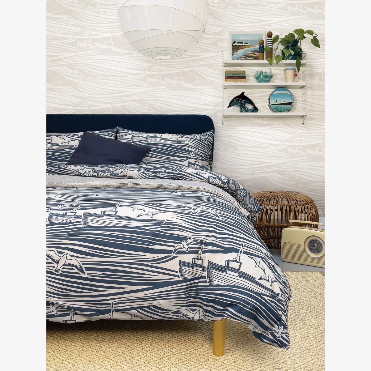 Ahoy!The bold wave motif of this Whitby cotton bedding captures the majesty of the open sea. Part of the Day-tripper collection, this pattern was inspired by the North Yorkshire coastal town where Mini Moderns designers, Mark and Keith spent their childhood holidays. The single set comes with one standard pillowcase. All other sizes come with two standard pillowcases. Bedding sizes To fit duvet/pillow size (cm) Standard pillowcase, L75 x W50cm Single duvet cover, L200 x W135cm Double duvet cover, L200 x W200cm King duvet cover, L220 x W225cm Super king duvet cover, L220 x W260cm