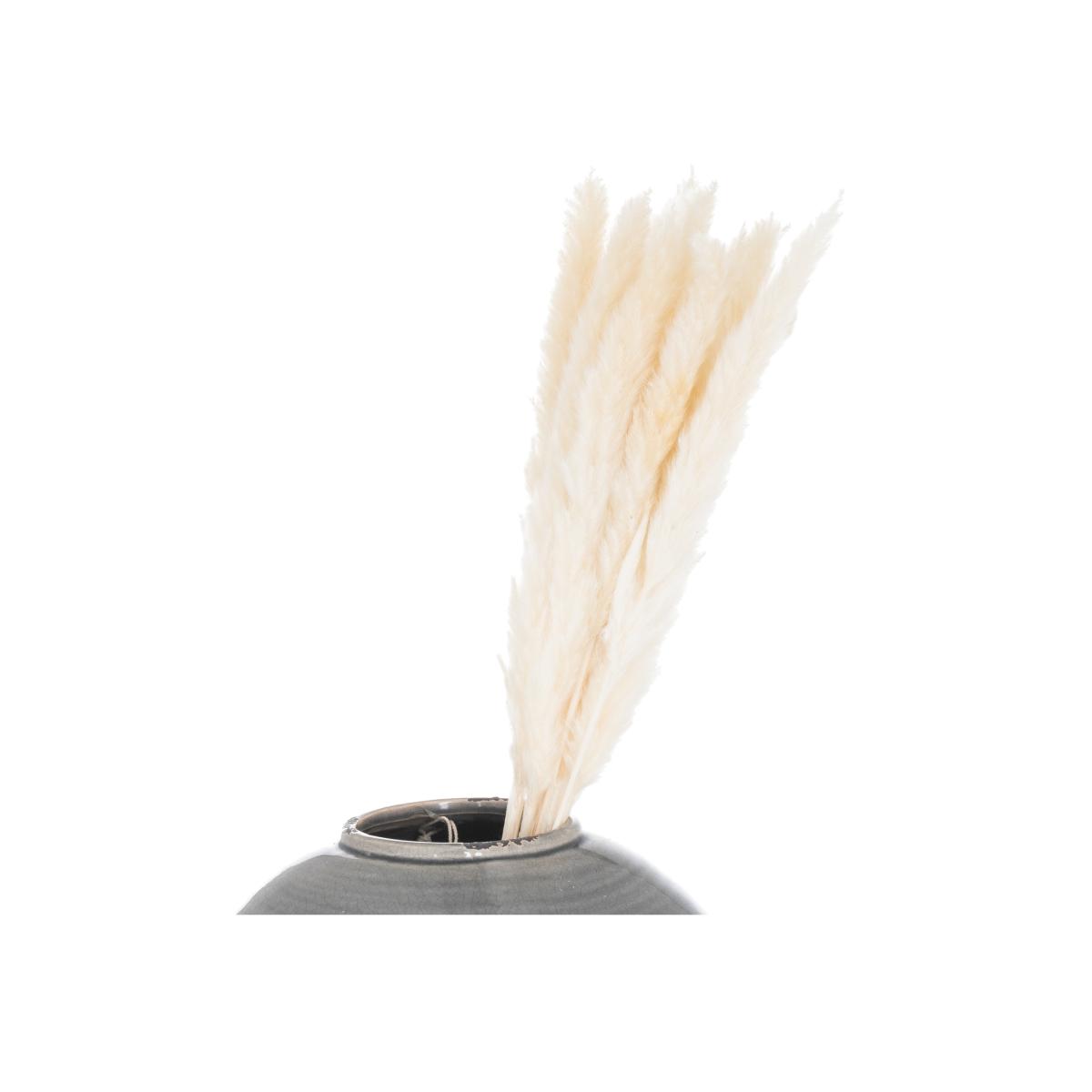 This is the Mini White Pampas Grass Bunch Of 15. The natural, dried texture and colour of this item is a great fit with those looking to create a warm neutral interior, layered with texture and interest. These stems look fantastic alone in a slim necked, short stem vase or interspersed amongst taller pampas grass and other dried flowers for a 'fuller' looking arrangement. Please note This item is a completely natural product and may vary in colour shade, length, width and fullness.