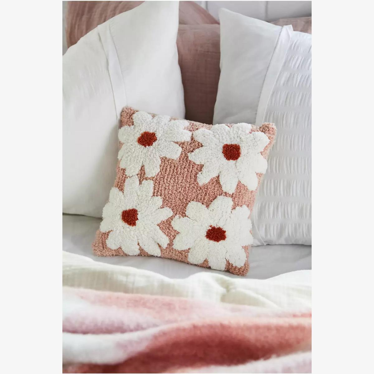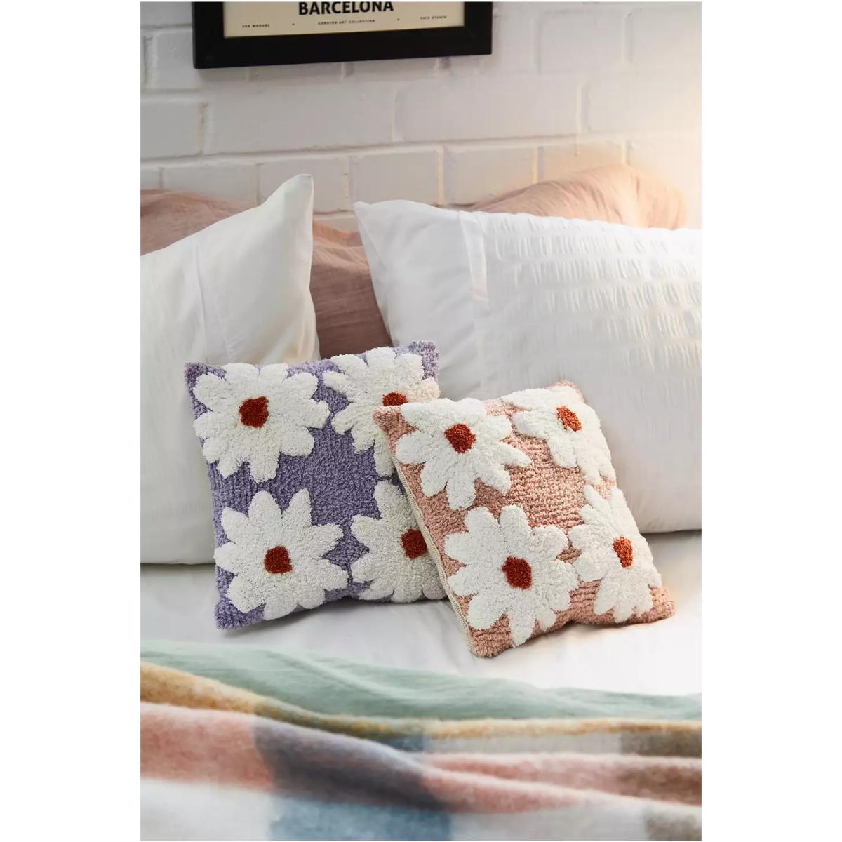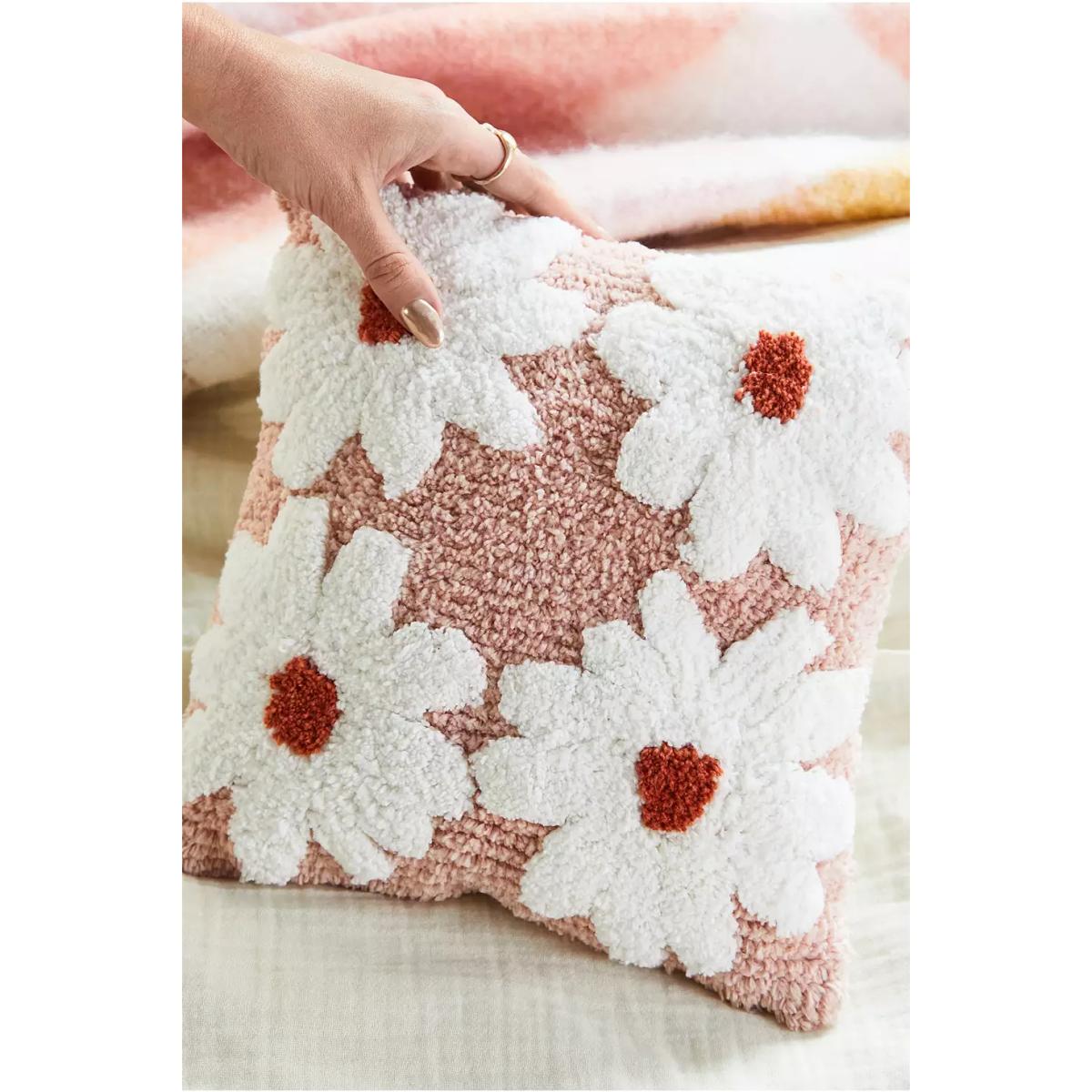 Cute tufted detailing tops this mini throw pillow with daisy motifs. Features a small square silhouette with padding inside, perfect for tossing onto your bed or sofa. **Content + Care** \- Main: 100% Cotton \- Fill: 100% Polyester \- Spot clean **Size** \- 25cm x 25cm