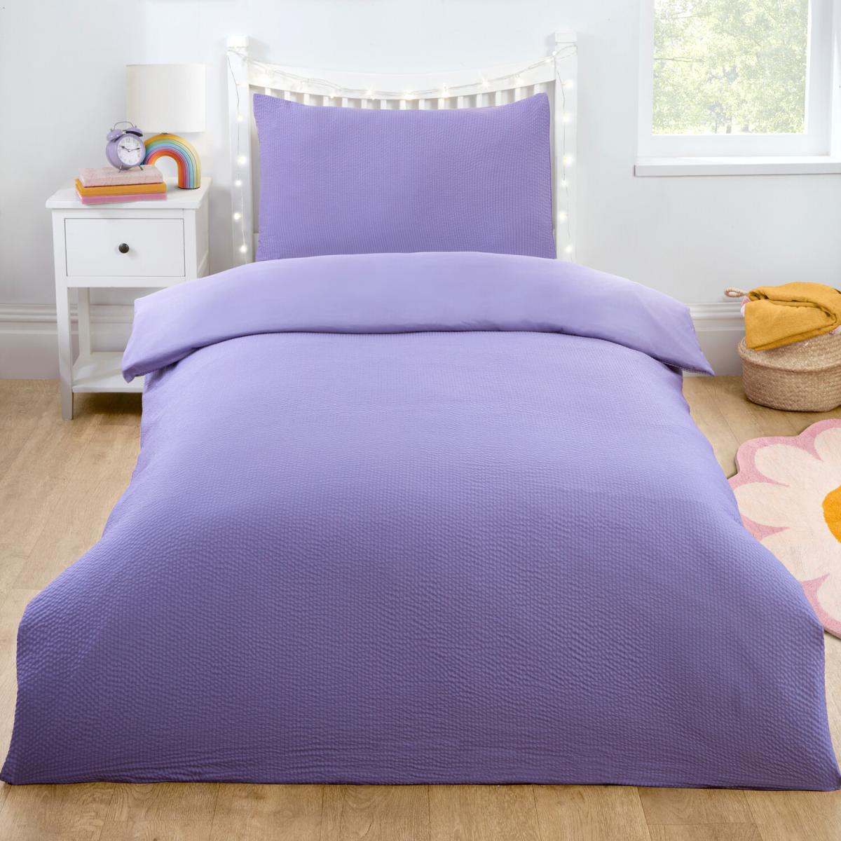 I love this purple seersucker set for its subtle texture and playful colour, making it a versatile addition to many bedrooms. It works particularly well in both modern and traditional interiors, offering a pop of colour without overwhelming the space. To style it effectively, consider pairing with neutral or pastel accessories for a calm, coordinated look, or add contrasting cushions in complementary colours for a bit of interest. Its lightweight nature also makes it great for layering in different seasons-think a cosy throw during winter or simple sheets in summer. Overall, it’s a practical, stylish choice that can update a room effortlessly.