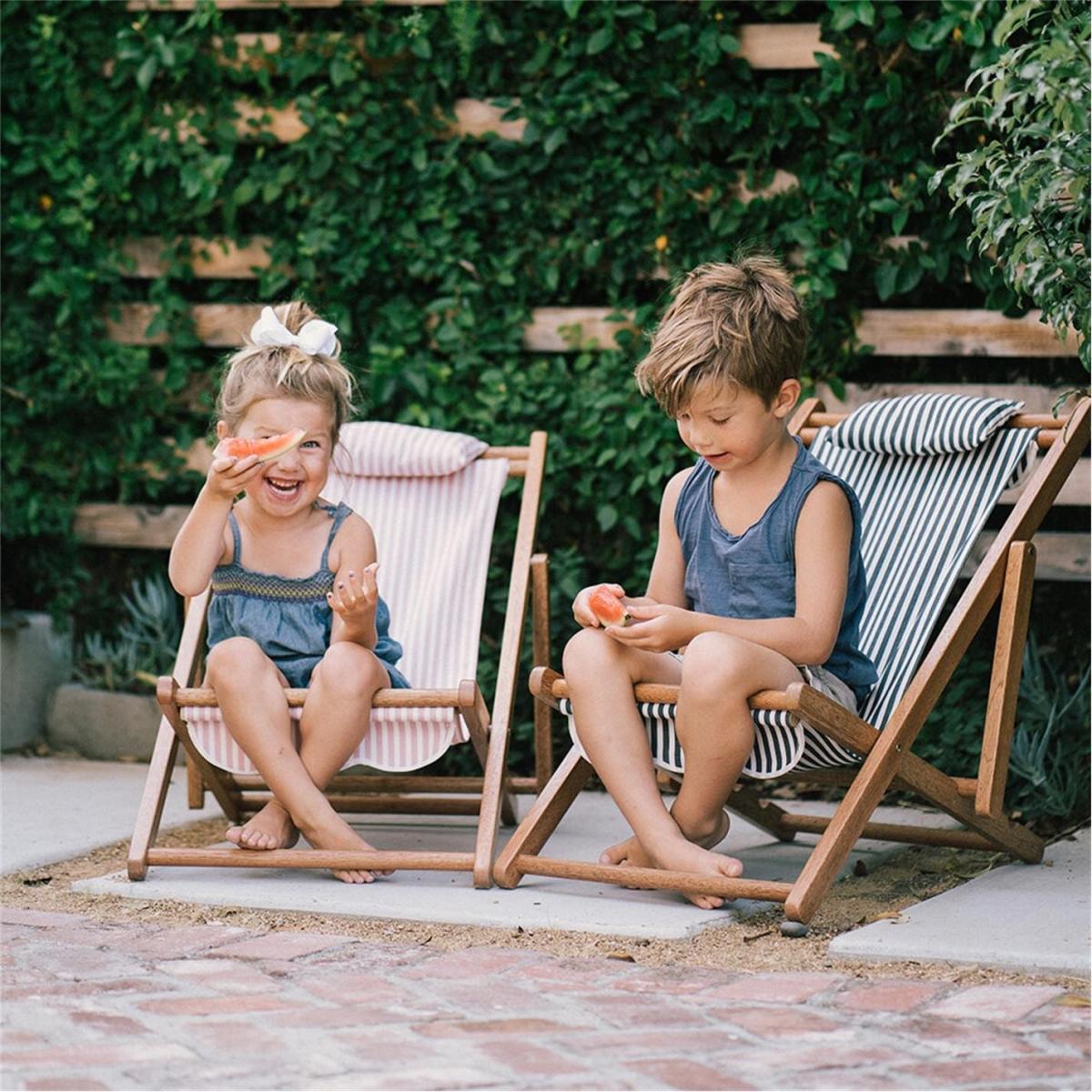 Ensure your little one has poolside style with this sling chair from Business & Pleasure Co. The perfect accessory for afternoons spent in the sun, this mini deck chair features a solid hardwood frame, sling canvas seat and comfy padded headrest. Perfect for sun-drenched days at the beach, it's available in two tones.