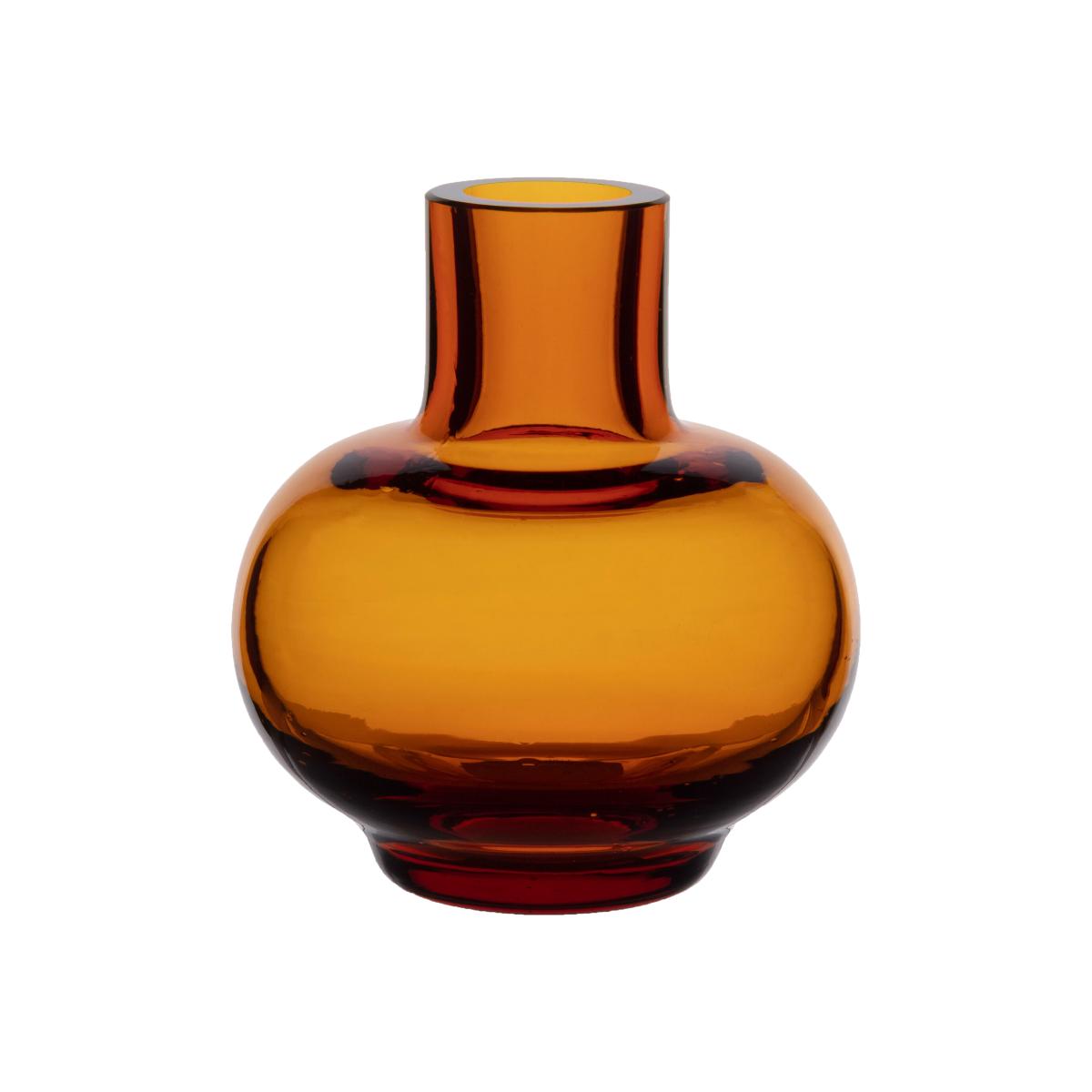 I love how this little orange vase adds a pop of colour and warmth to any space. Its rounded shape and rich amber tone make it a versatile piece that pairs well with minimalist or bohemian interiors alike. It works particularly well on mantels, coffee tables, or shelves, where it can be styled solo for a subtle statement or mixed with greenery or dried florals for a bit of natural appeal. Practical styling tips include pairing it with neutral-toned accessories to let the colour sing, or combining it with smaller vases in complementary shades for a curated, layered display. Its compact size makes it perfect for adding visual interest without overwhelming a space.
