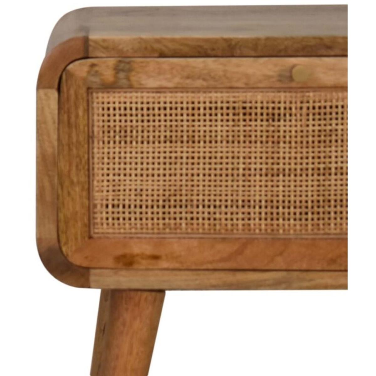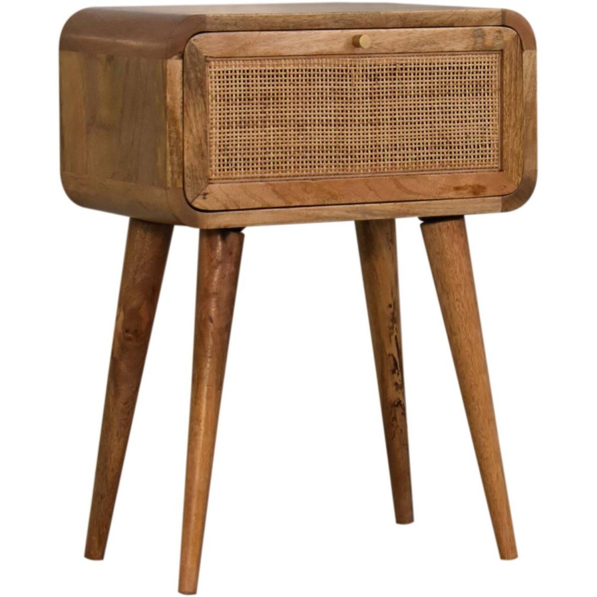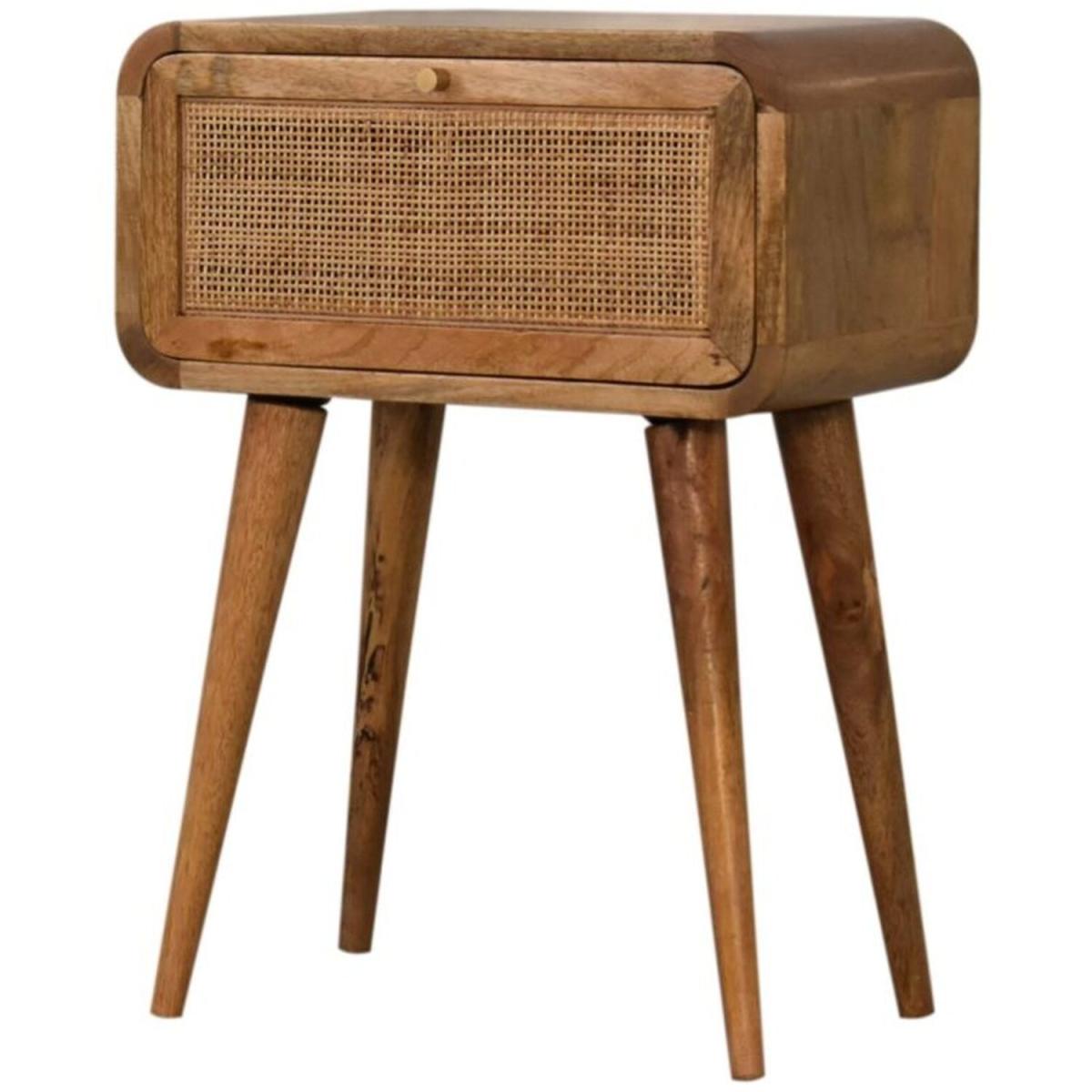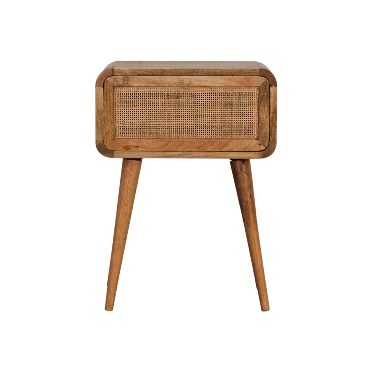The little brother to our famous IN1019 Woven Bedside. This stylish bedside combines a woven rattan work drawer front with a smooth oak-ish finish body and legs. Constructed from 100 solid mango legs it has a shiny knob on the drawer and Nordic style legs. Make full use of this bedside in the bedroom and partner it with the rest of the woven collection. Dimensions H 54cm x W 40cm x D 25cm