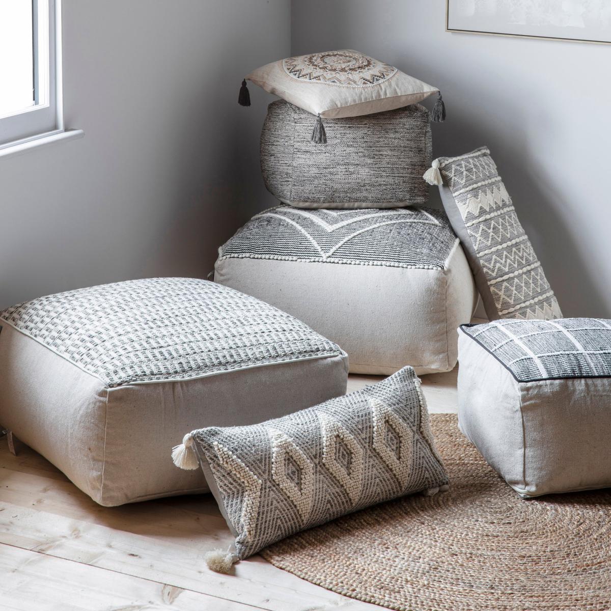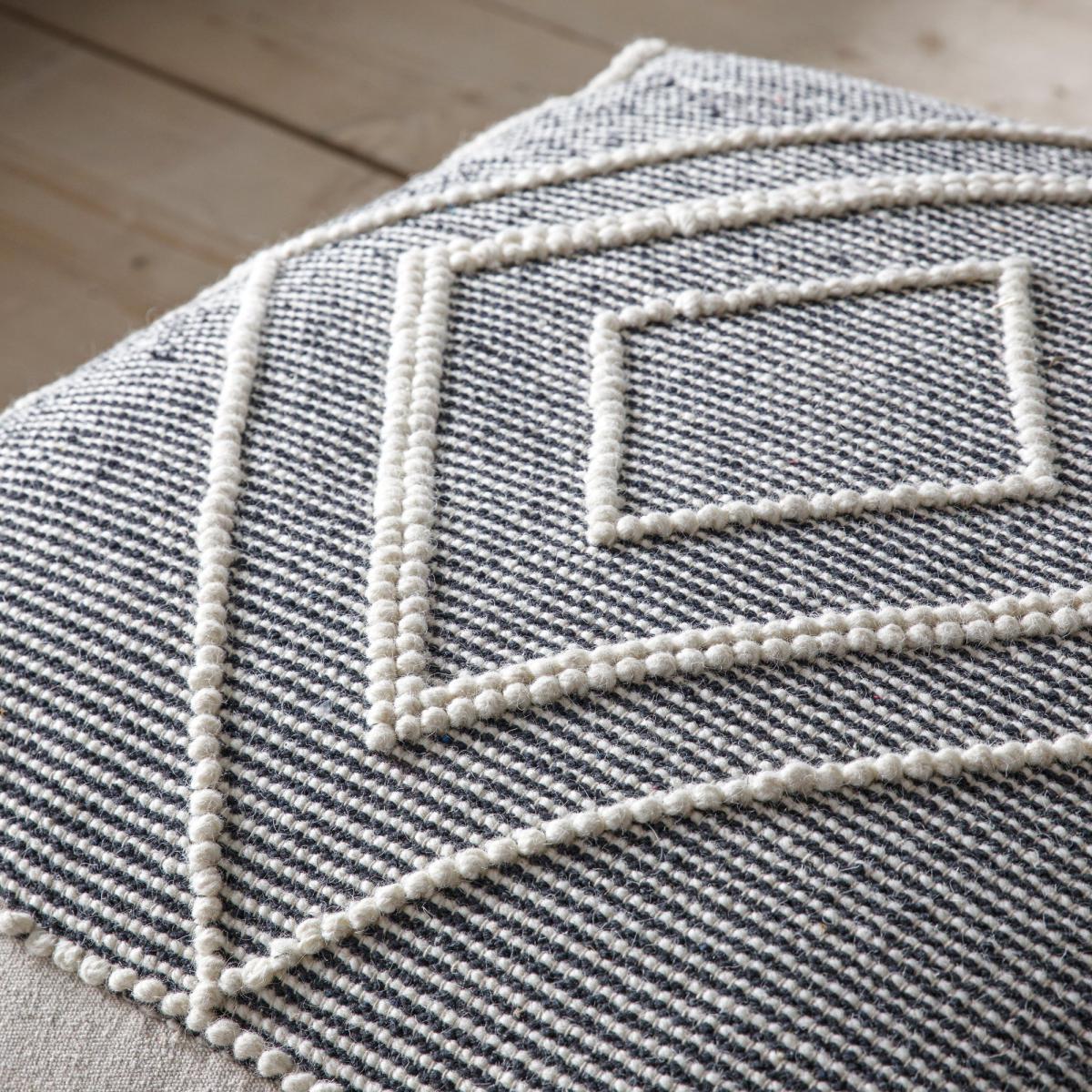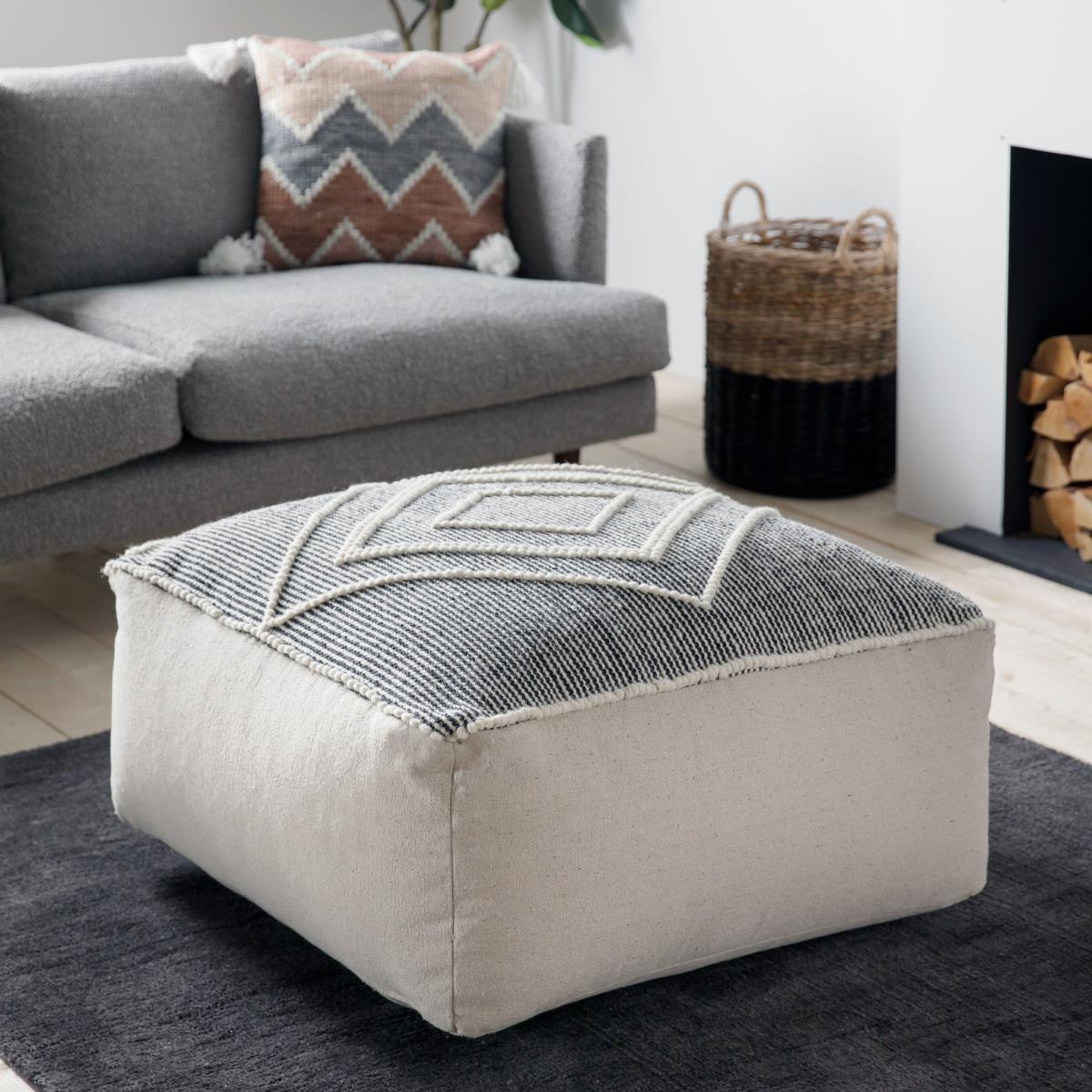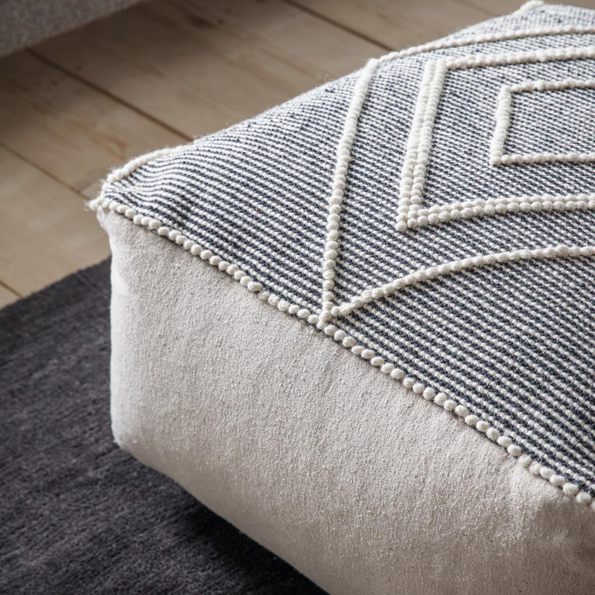 Add style and versatility to your home with this simple contemporary handcrafted large pouffe. Designed with woven artisan grey top and natural sleek canvas sides. This subtle yet stylish pouffe will bring a modern twist to your home!.