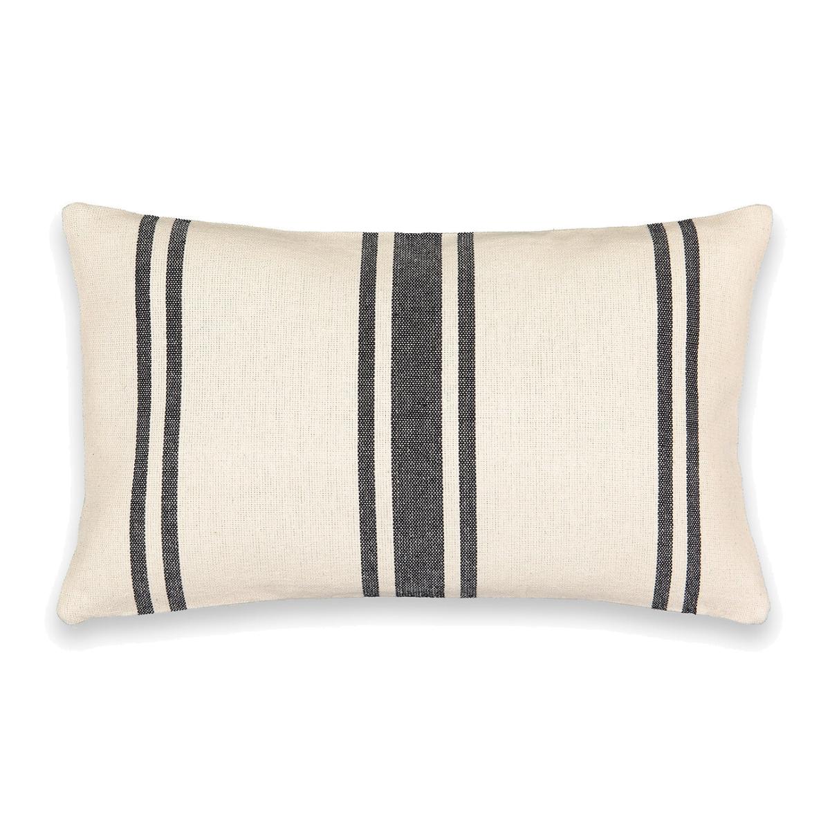 The Minille cushion cover plays the black and ecru stripe card to bring a bohemian touch to your decor. Product Details • 100% cotton • Vertical stripe print both sides • Zip fastening. Size • 50 x 30cm Shop the Terra cushion pad range and other pieces from the Minille collection on the site. • OEKO-TEX® Standard 100. Standard 100 certification by OEKO-TEX® tests textile products for harmful substances via an independent, international label.