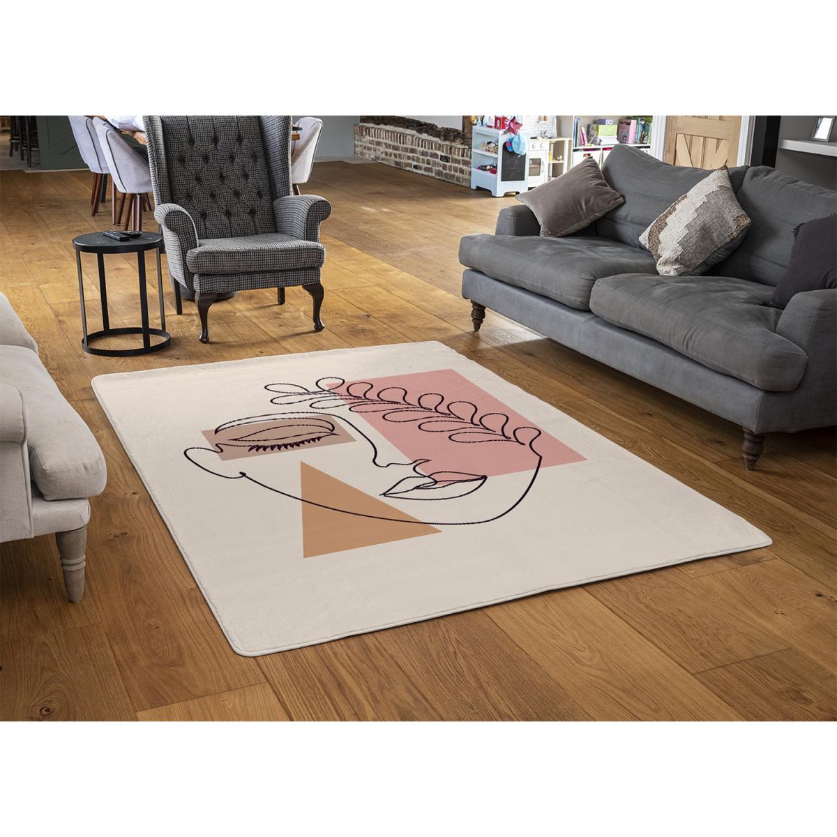 Minimal Line Drawing Of Womans Face Designer Rug - White / 150cm