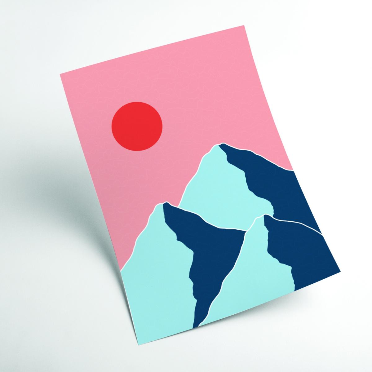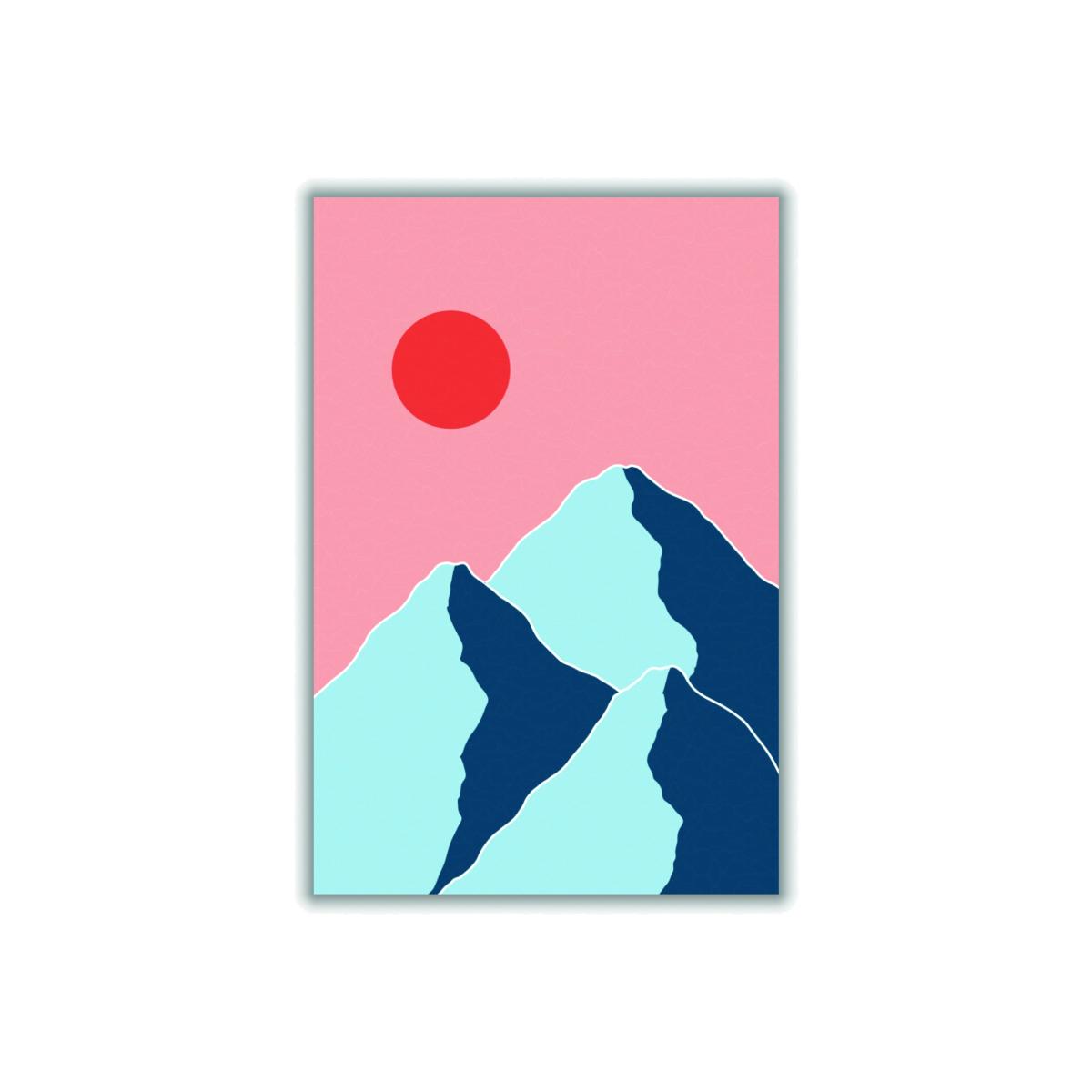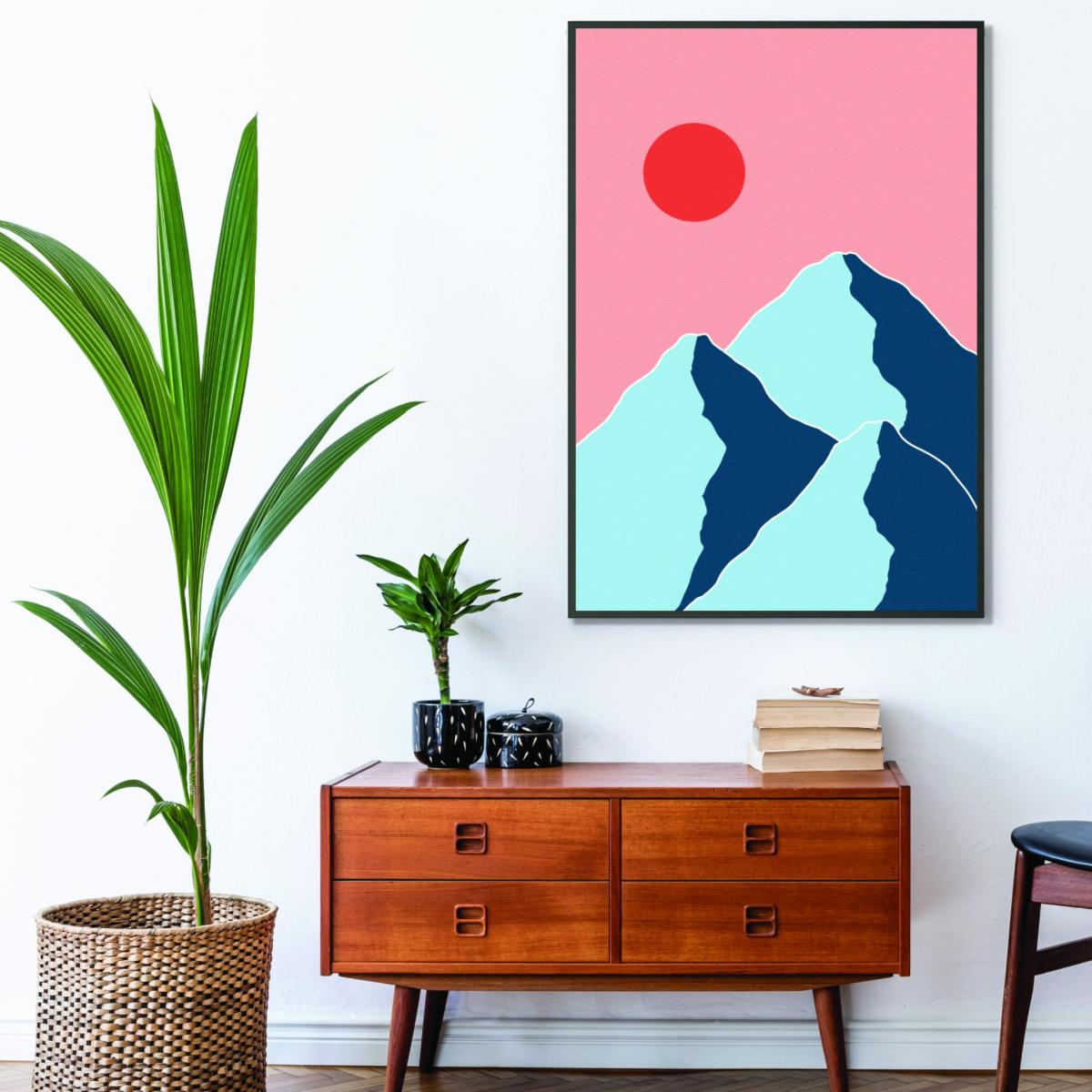 I love this mountain print for its bold, modern take on nature, making it perfect for contemporary interiors. It works particularly well in minimalist or Scandinavian schemes where the clean lines and soft pastel colours can add a touch of personality without overwhelming the space. For styling, consider pairing it with neutral-toned furnishings and subtle textures to let the artwork stand out. It also suits spaces like living rooms, bedrooms, or home offices, where its calming yet striking presence can be appreciated. A good tip is to hang it at eye level and keep surrounding accessories simple, allowing this statement piece to be a focal point in a carefully curated setting.